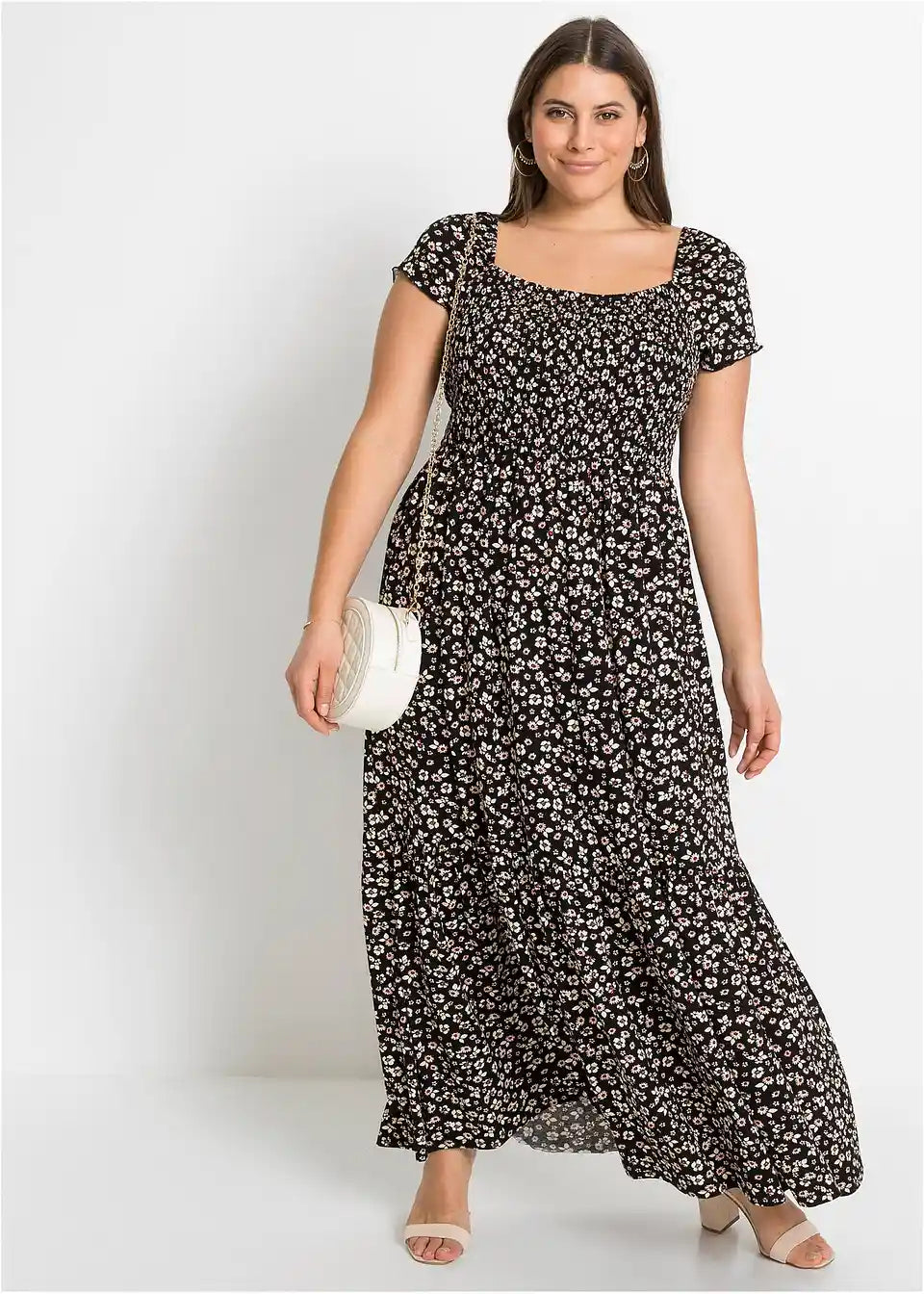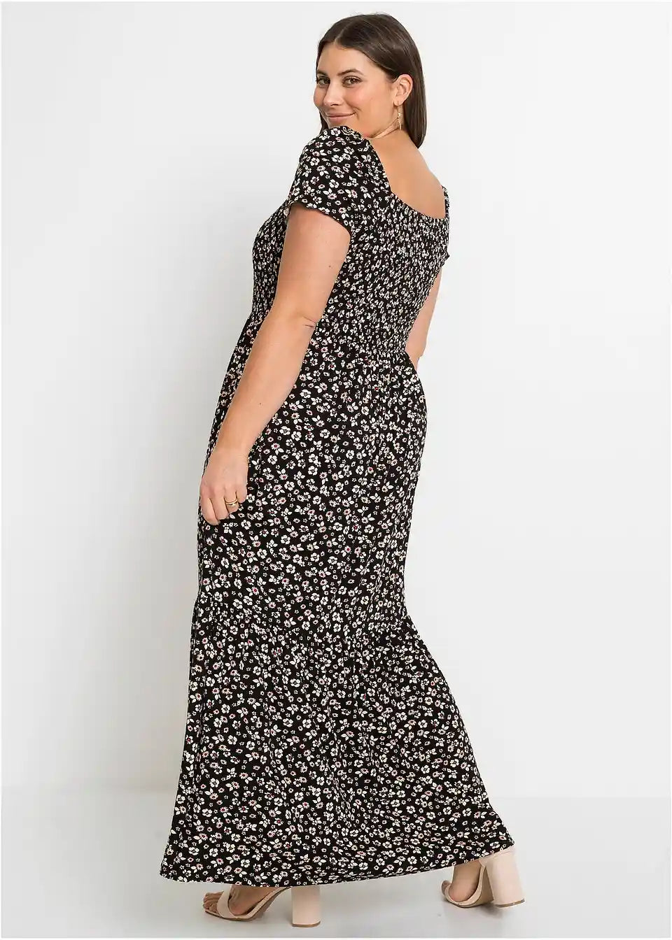 Potiskana dolga obleka iz trajnostne viskoze