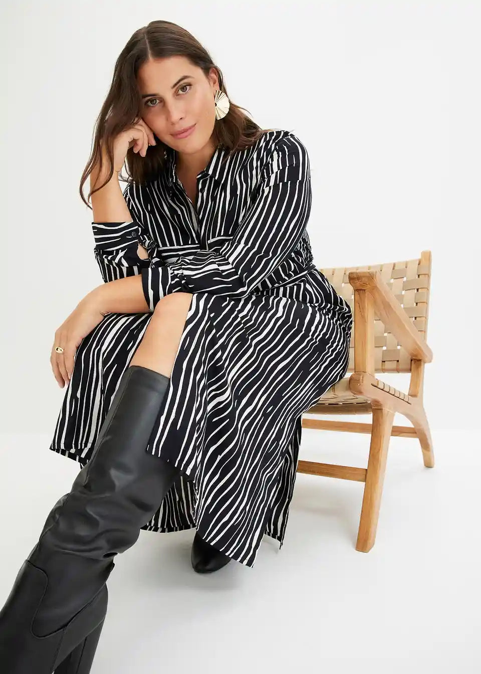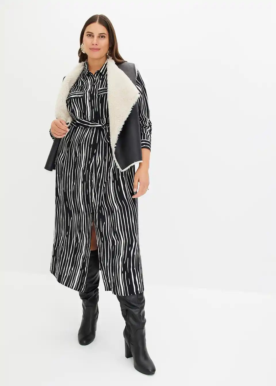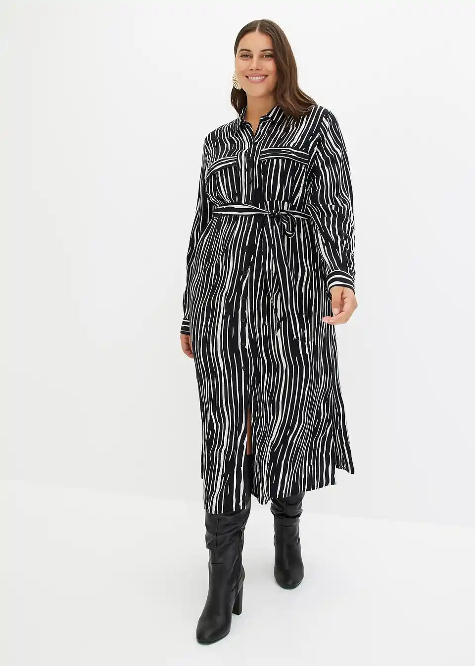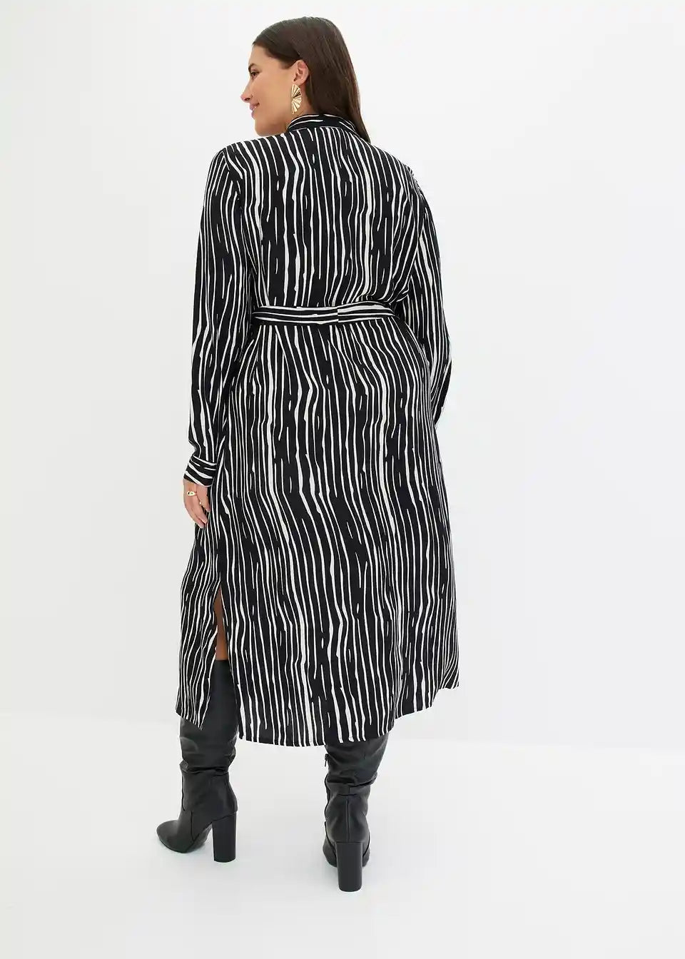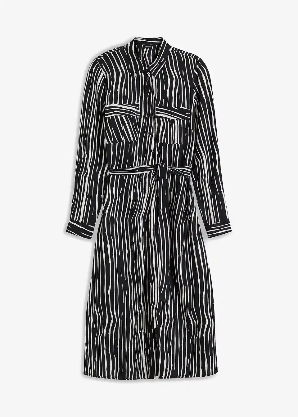 modna midi obleka s sprednjo zapetjem z gumbi in pasom za vezanje v pasu