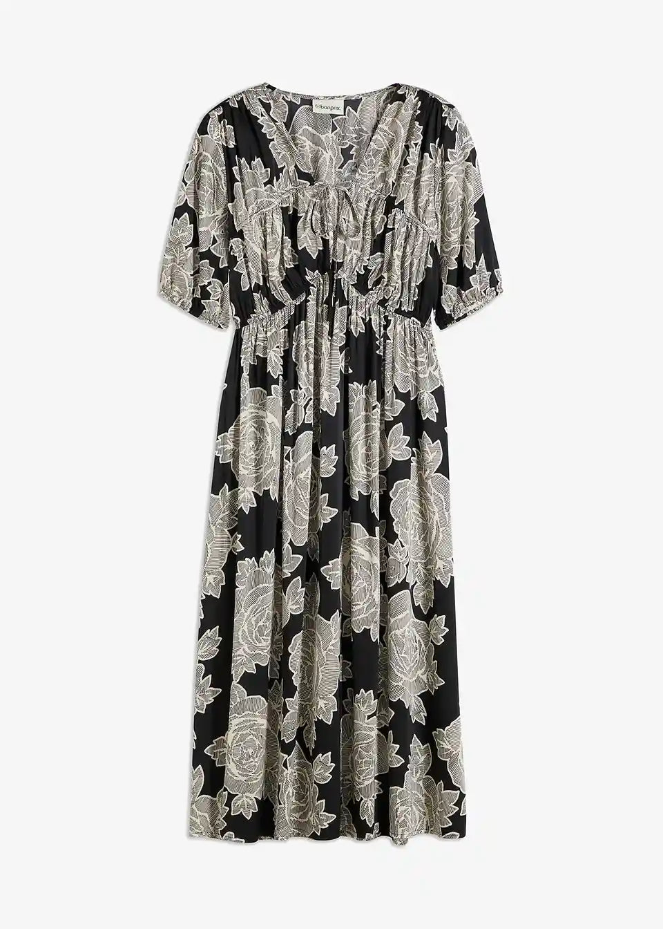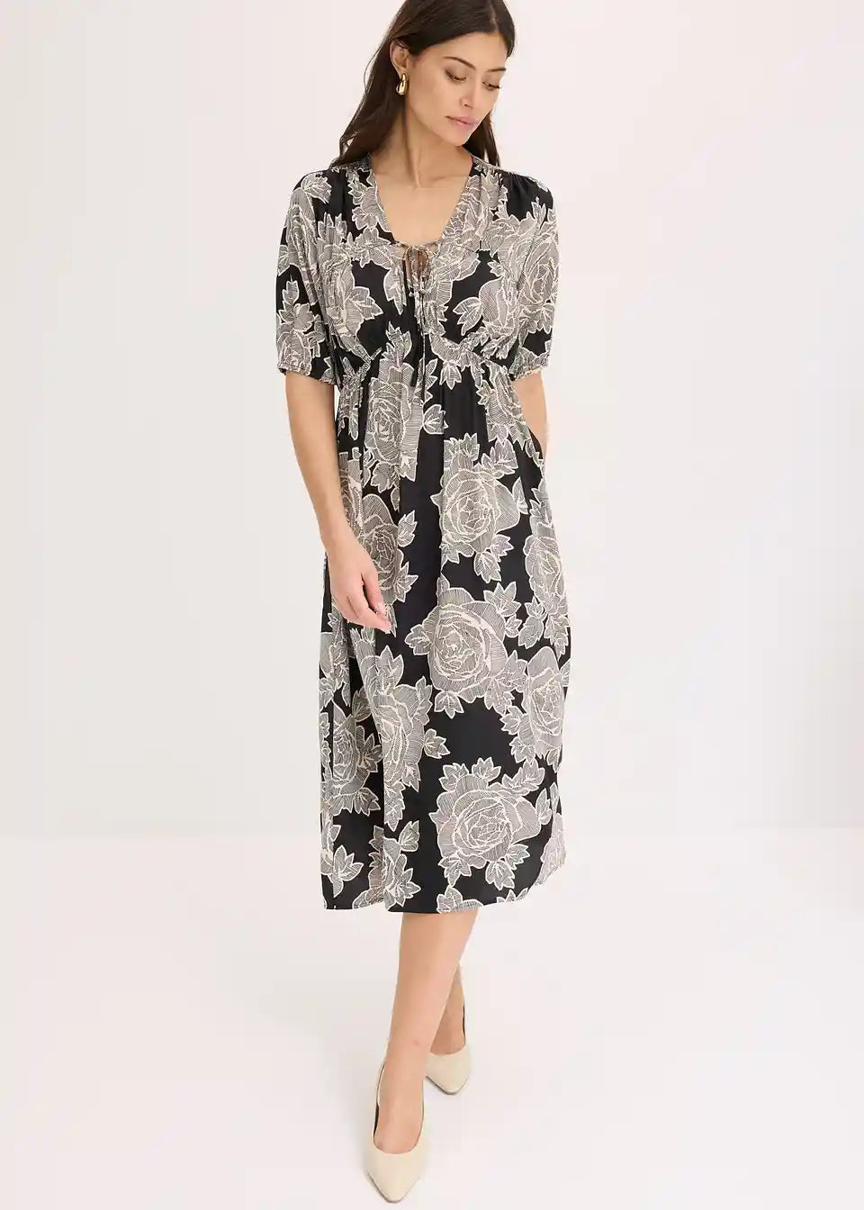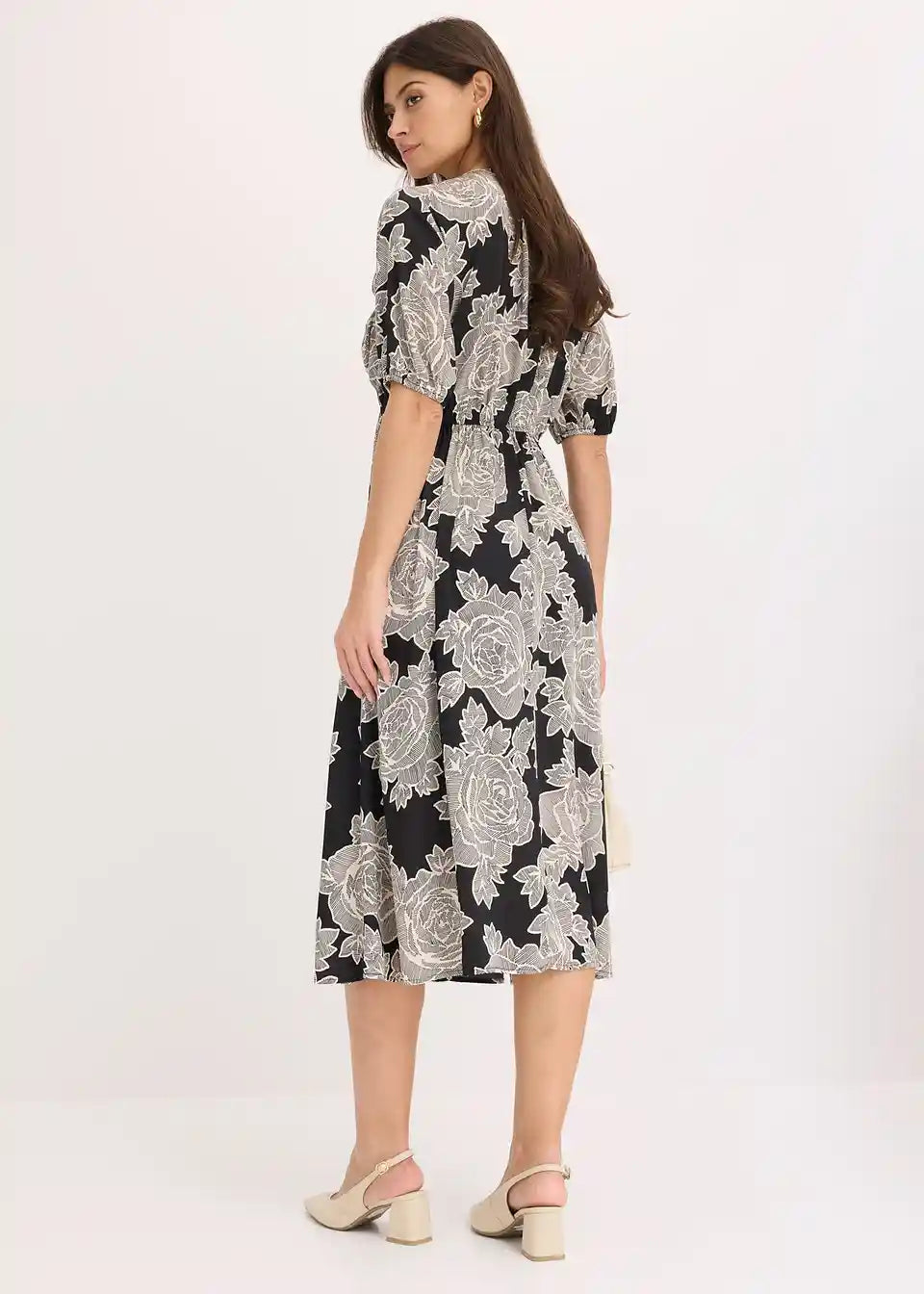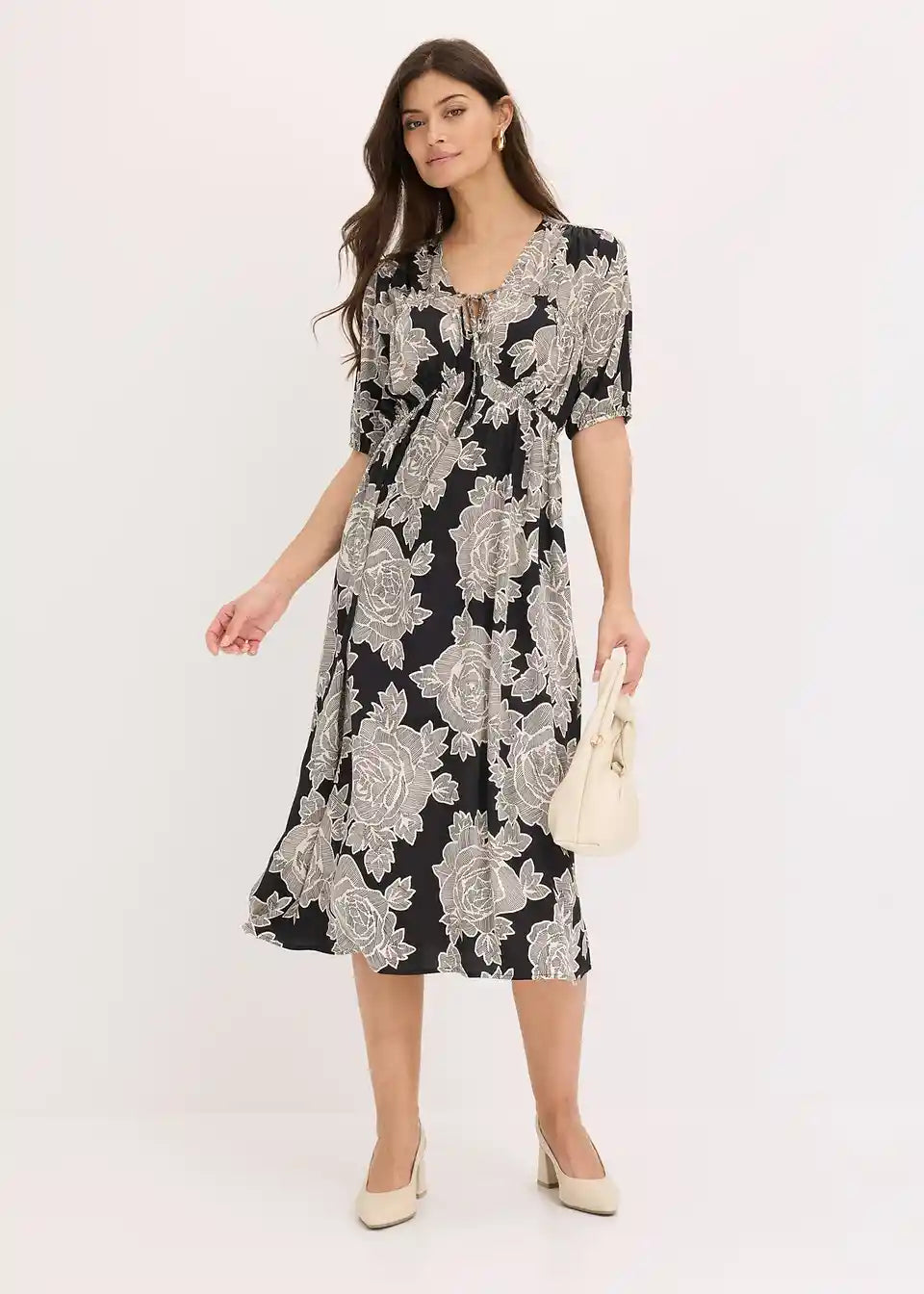 ženstvena midija iz tekočega satena s cvetličnim potiskom.