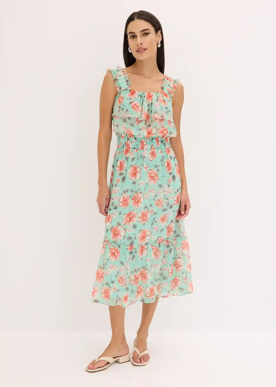 ženstvena obleka Carmen s cvetličnim potiskom