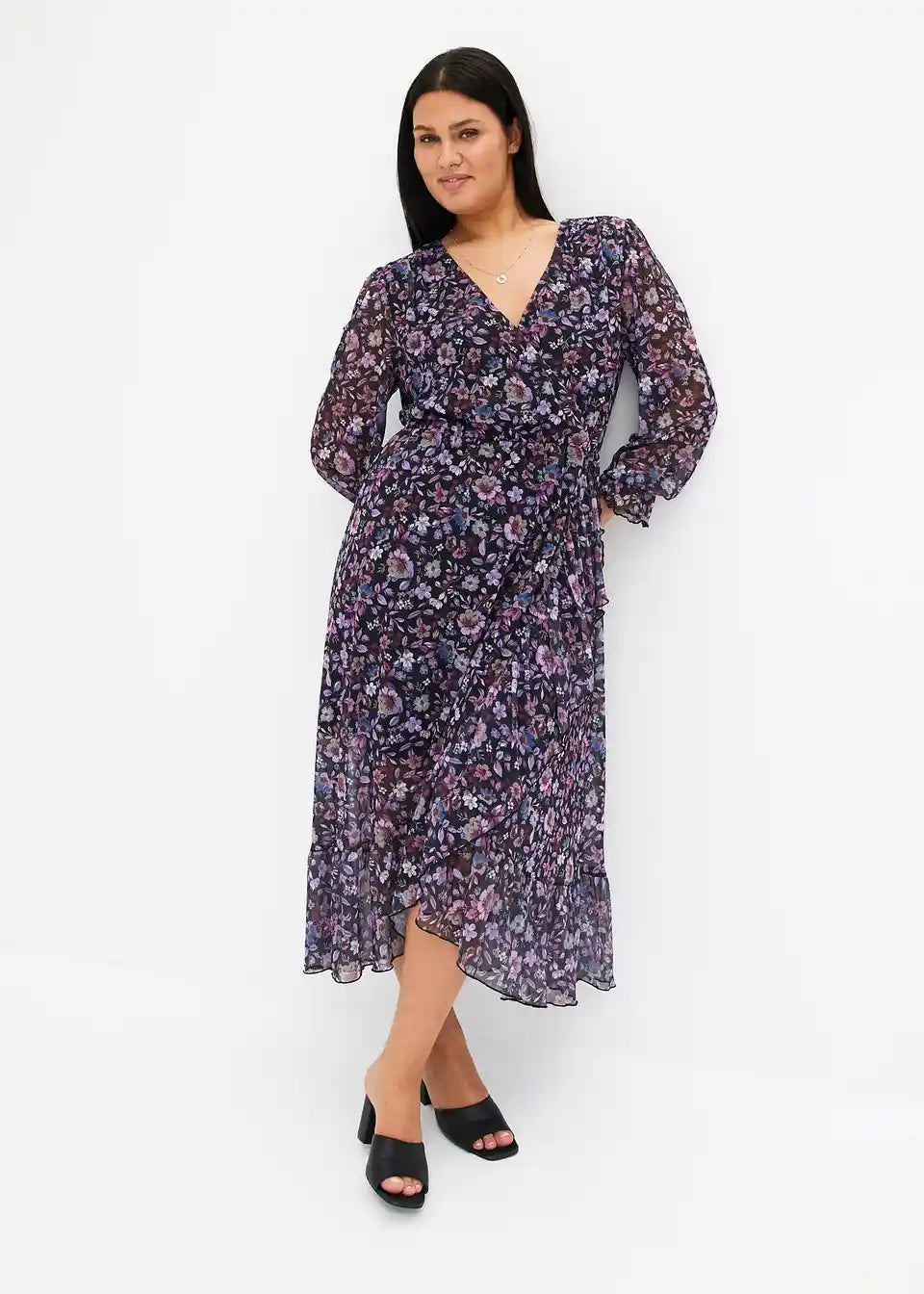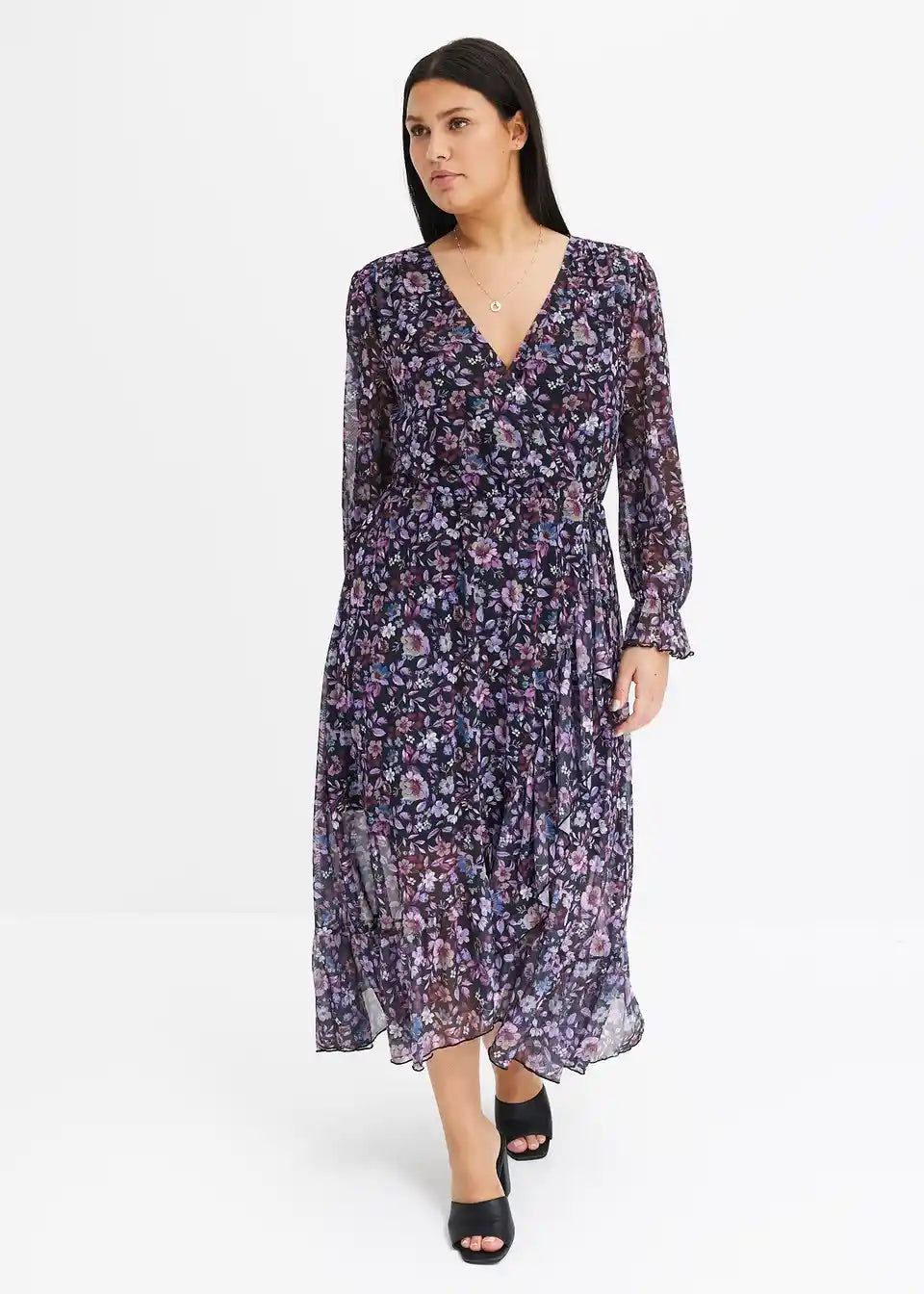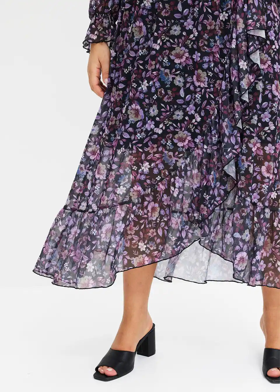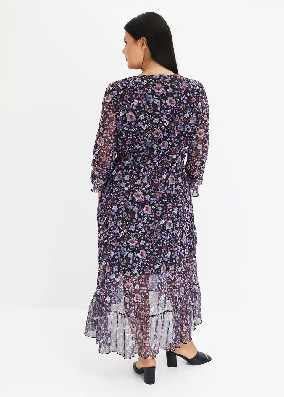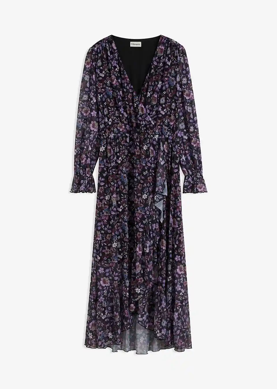 ženstvena obleka iz Mrežaste tkanine s cvetličnim potiskom.