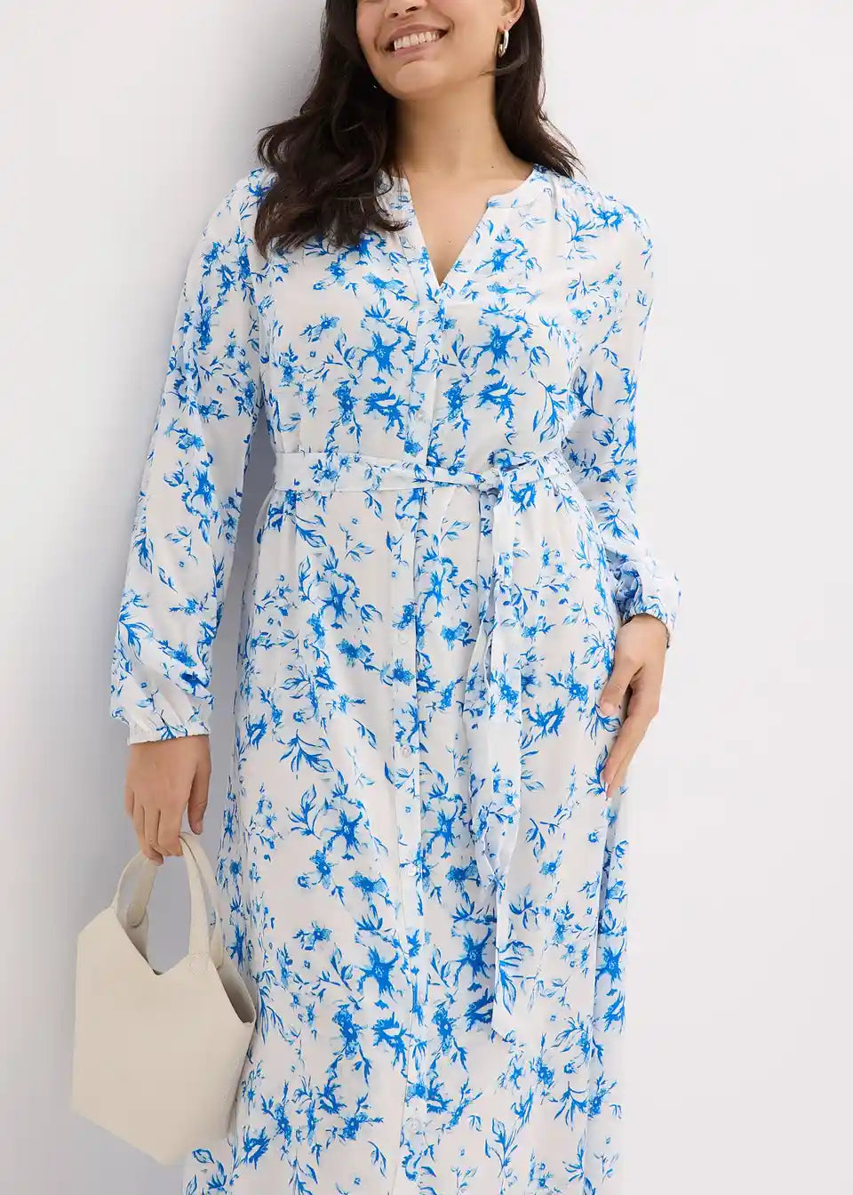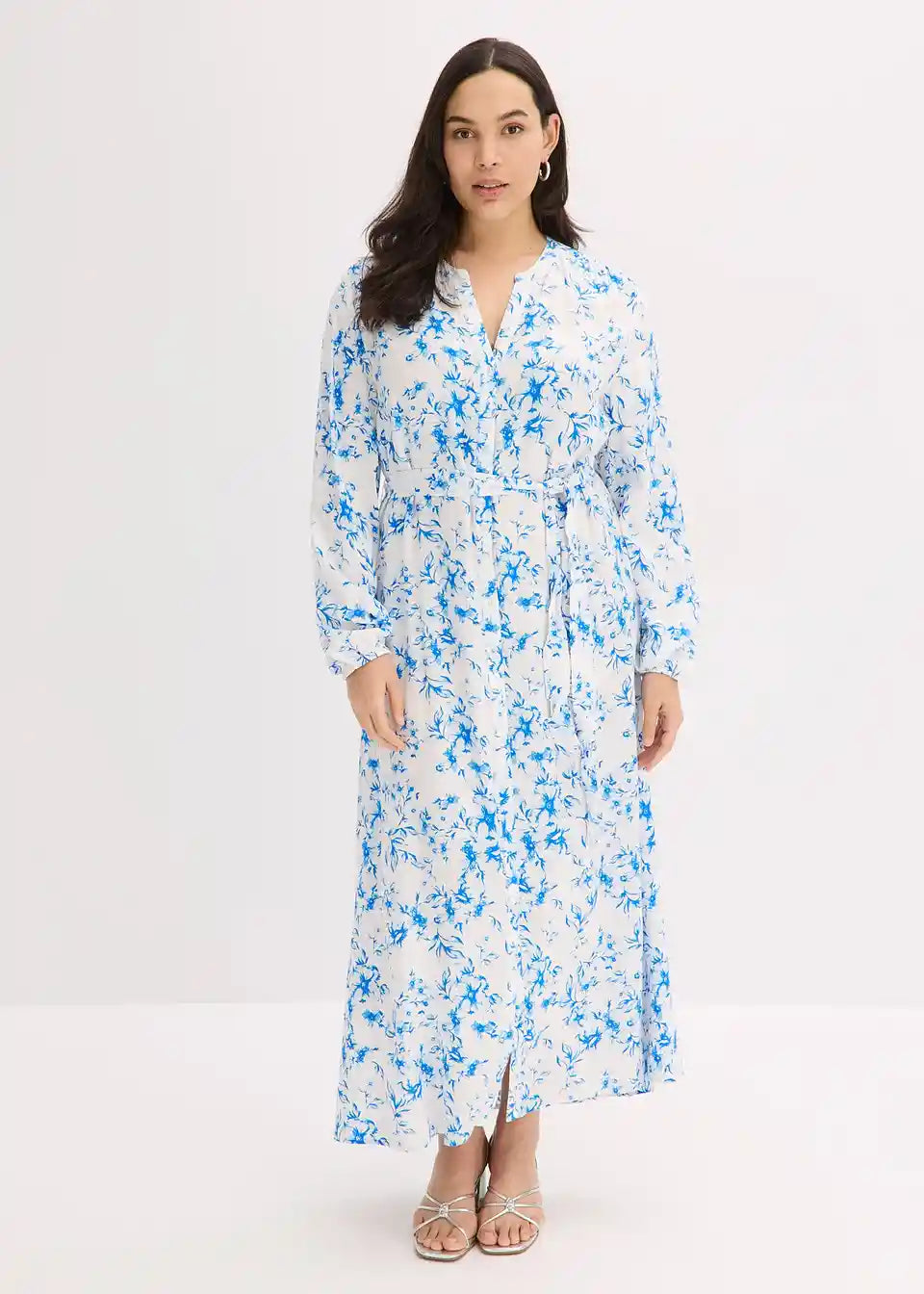ženska srajčna obleka v maksi dolžini s cvetličnim potiskom