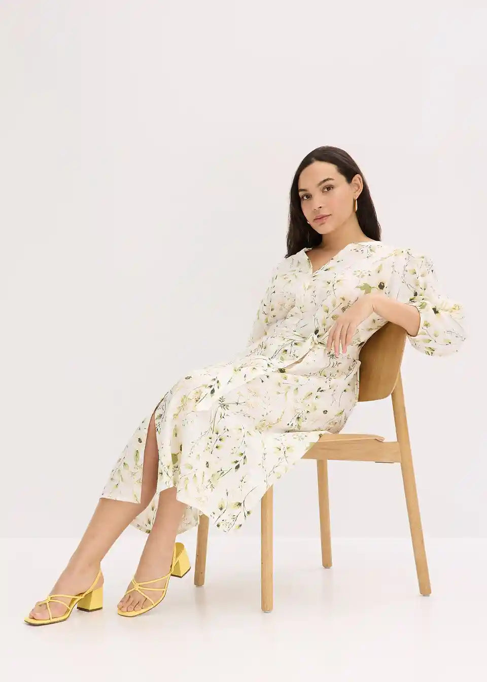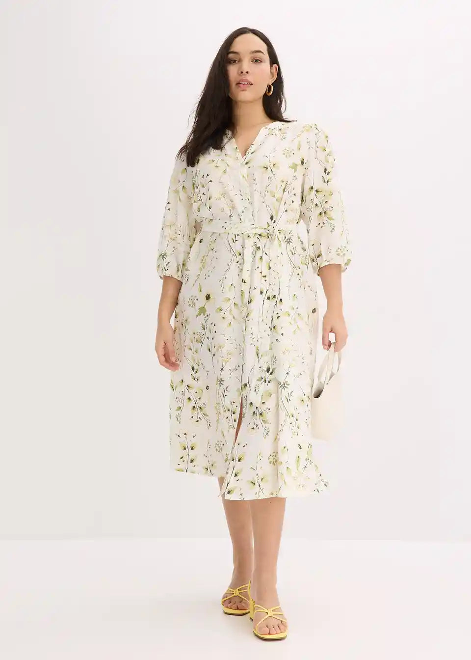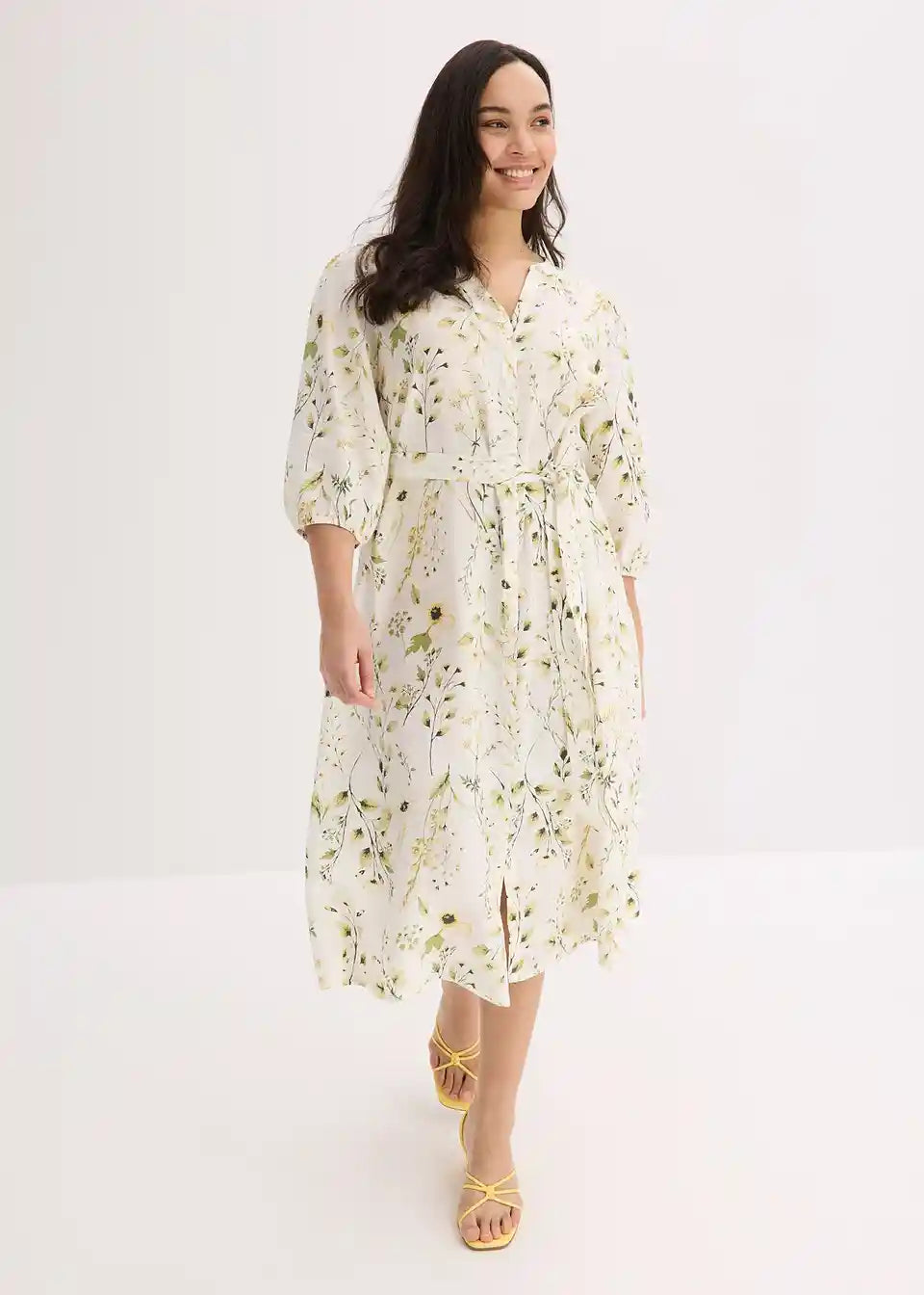 ženska srajčna obleka midi dolžine s cvetličnim potiskom