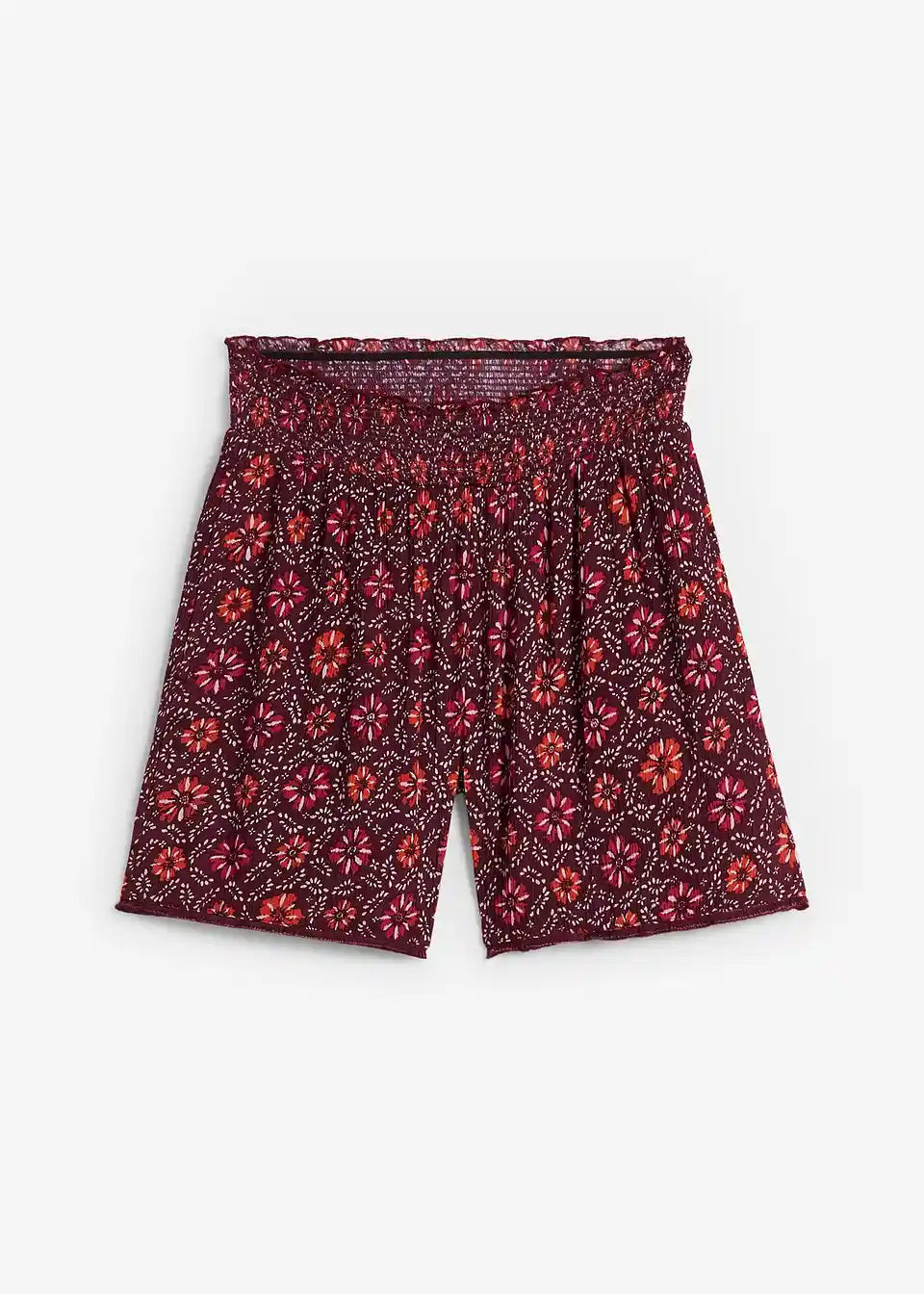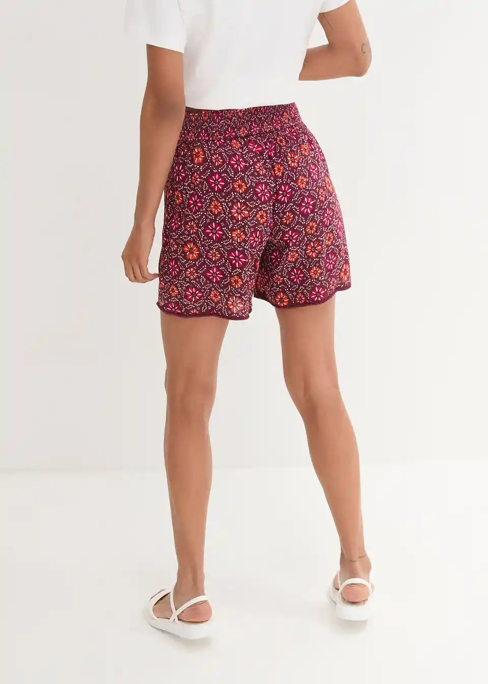 Kratke hlače z elastiko v pasu iz potiskane mečkanke