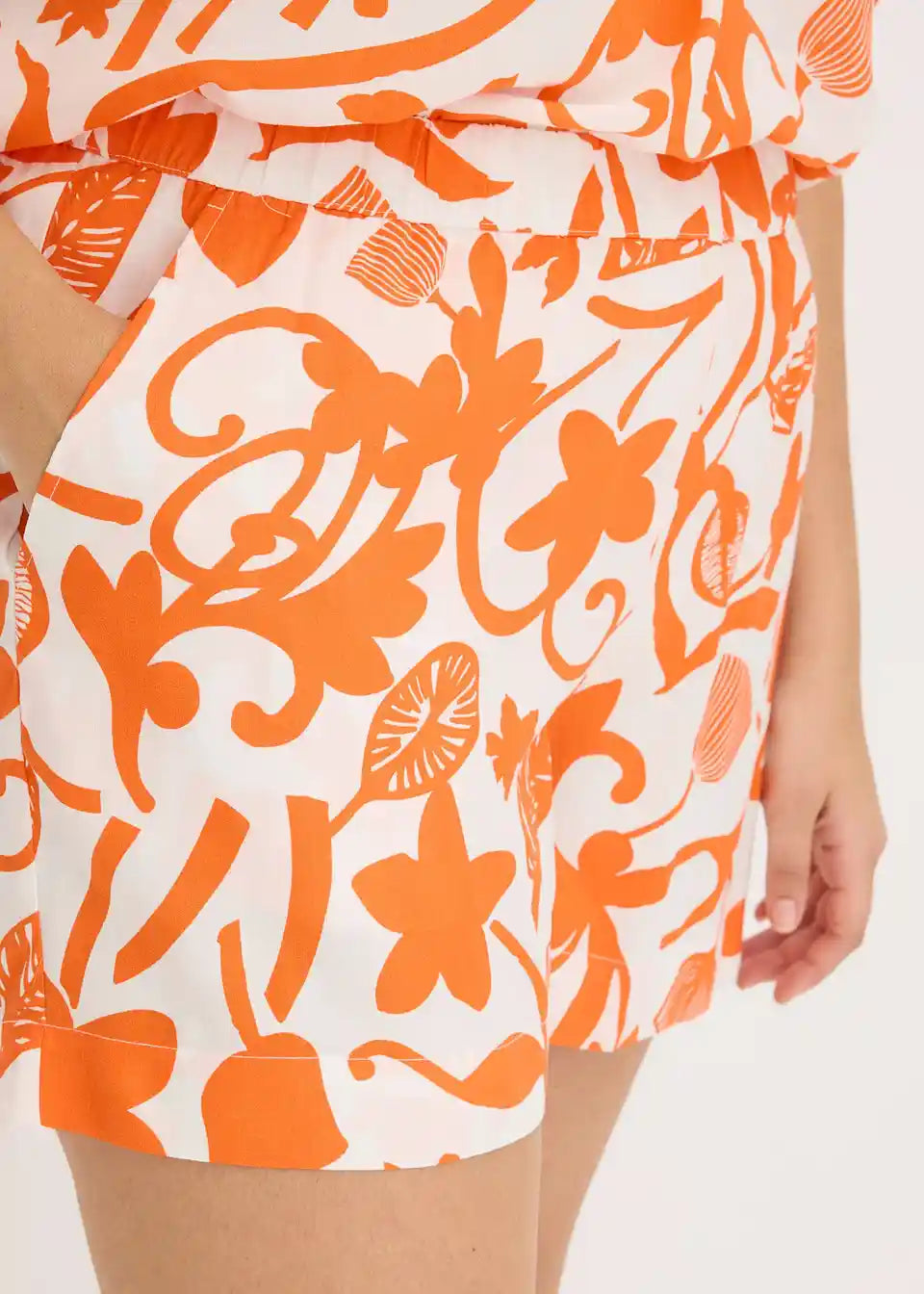 kratke hlače z rožastim potiskom in elastičnim pasom