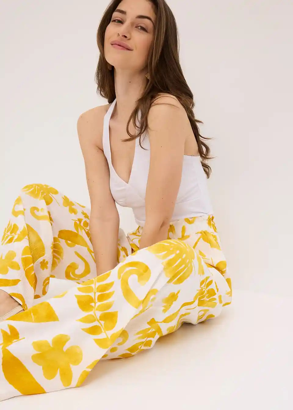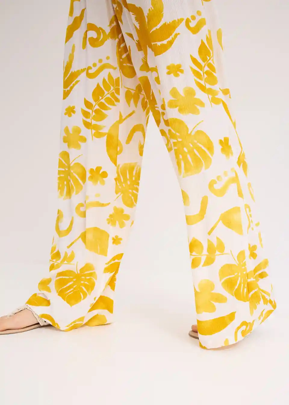 Potiskane široke hlače iz strukturirane viskoze