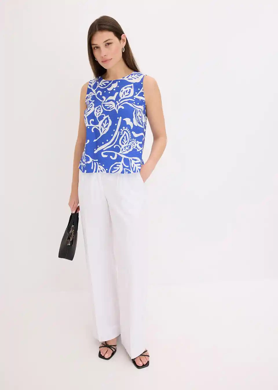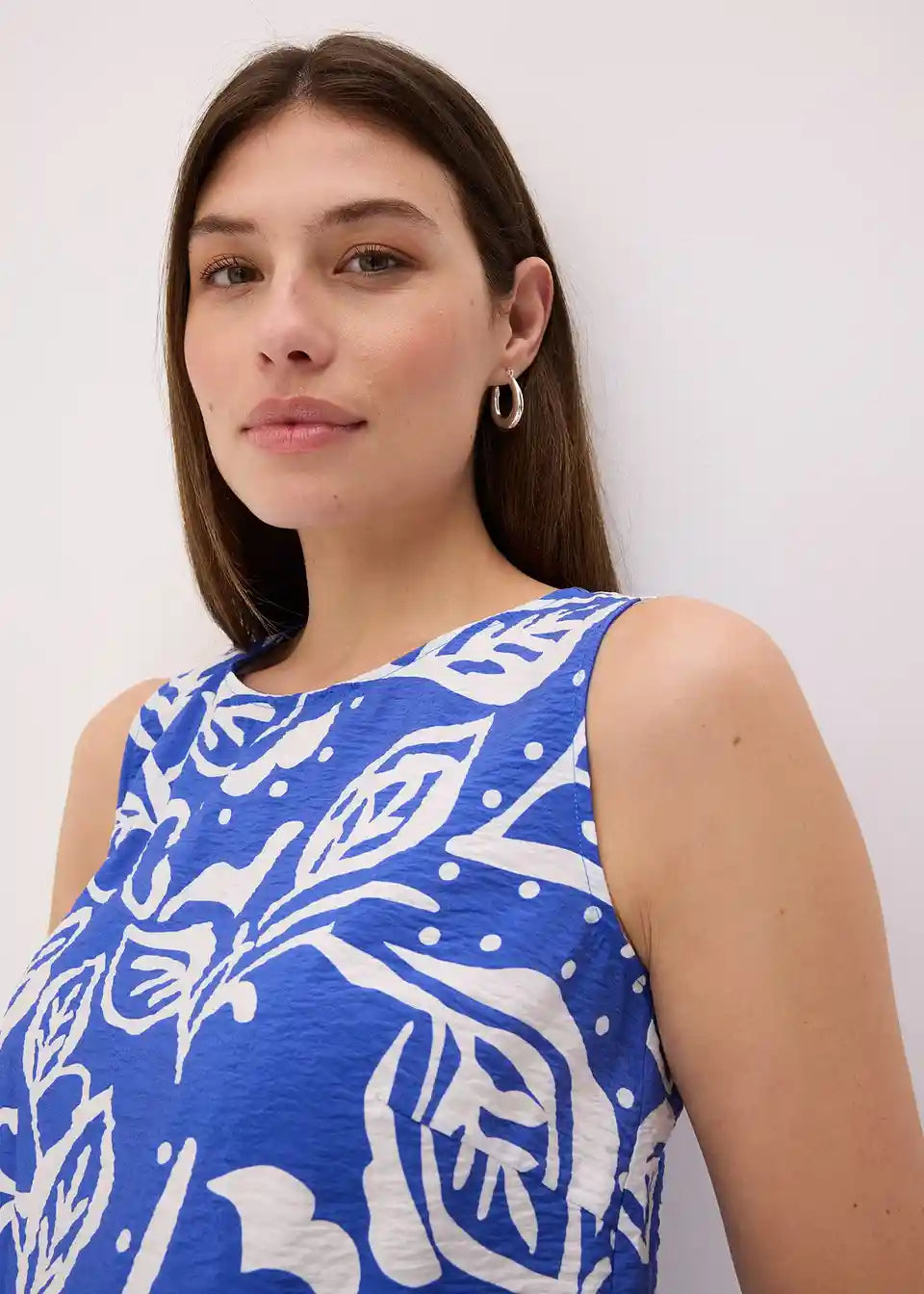 moden tiskani bluzni top z zapenjanjem na gumb zadaj na izrezu