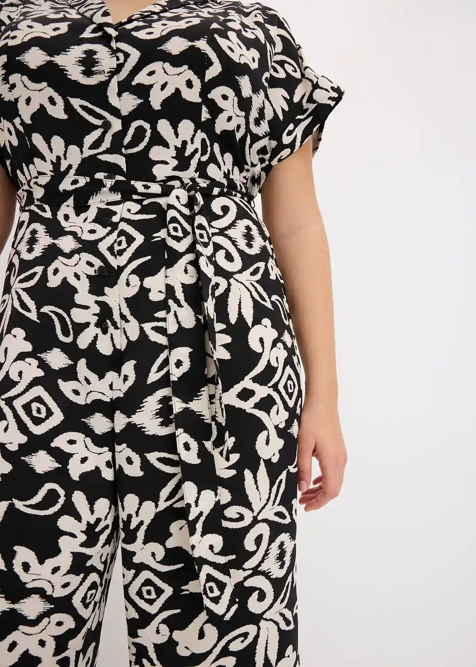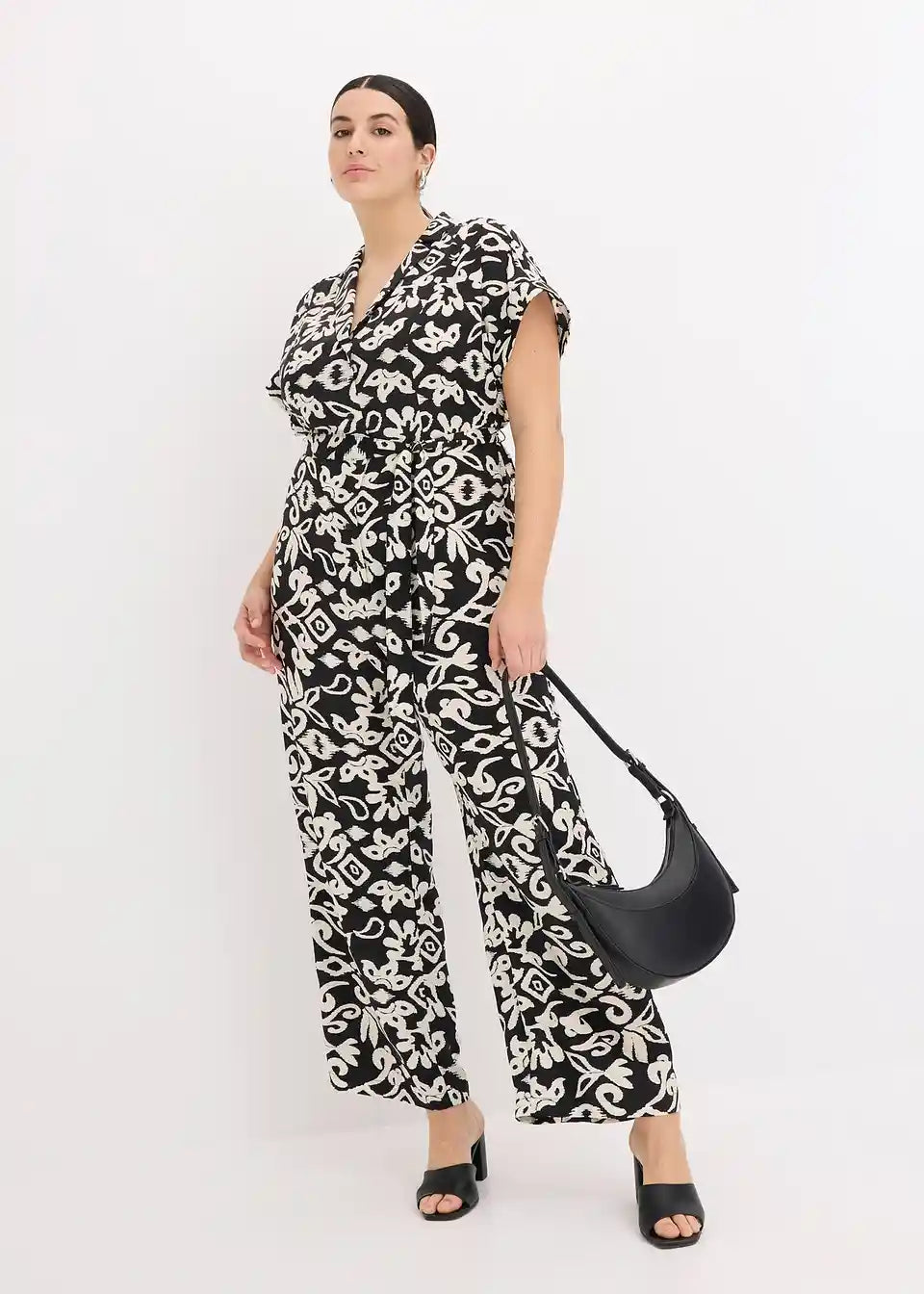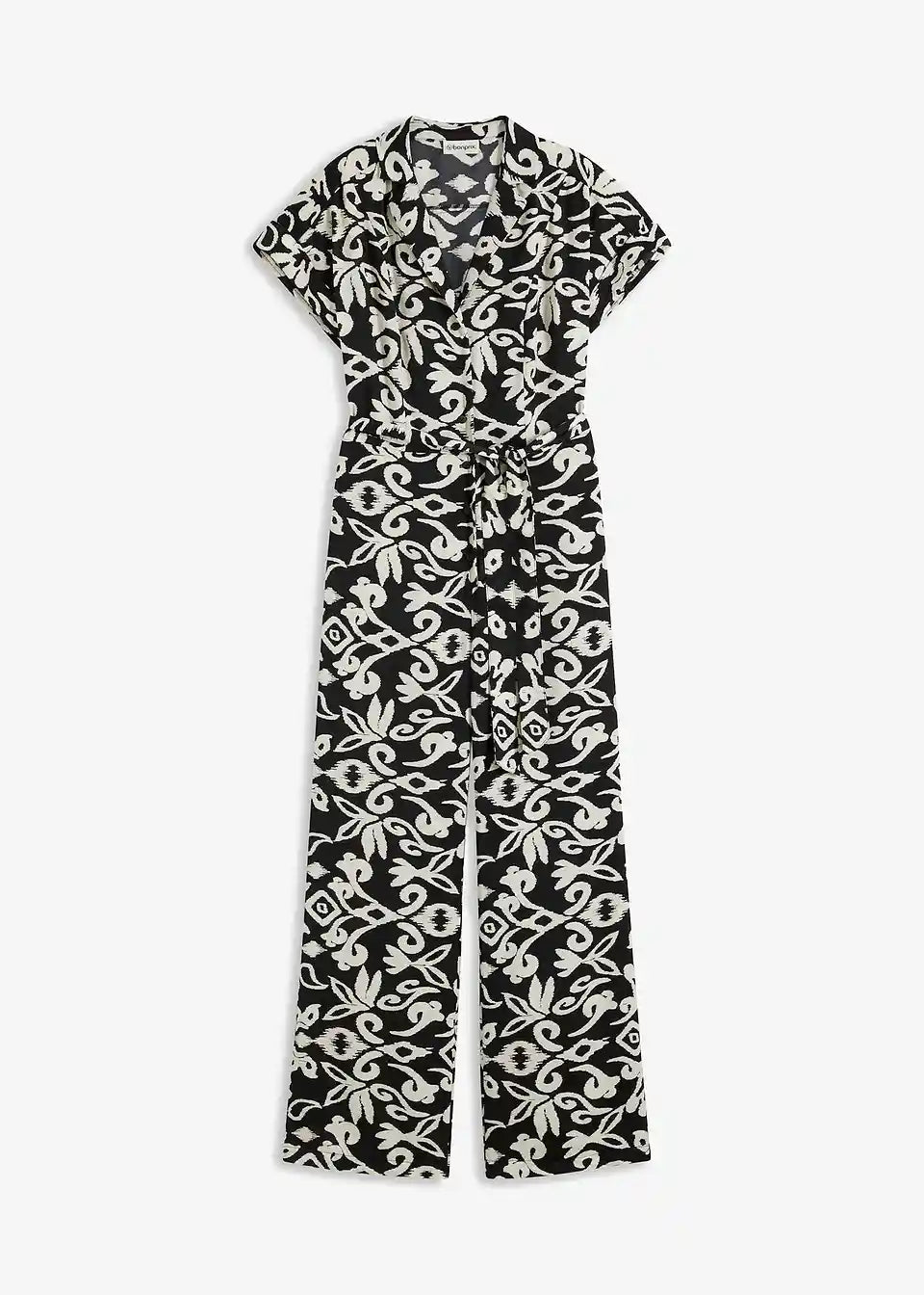 Modno tiskani Jumpsuit s širokimi hlačnicami.
