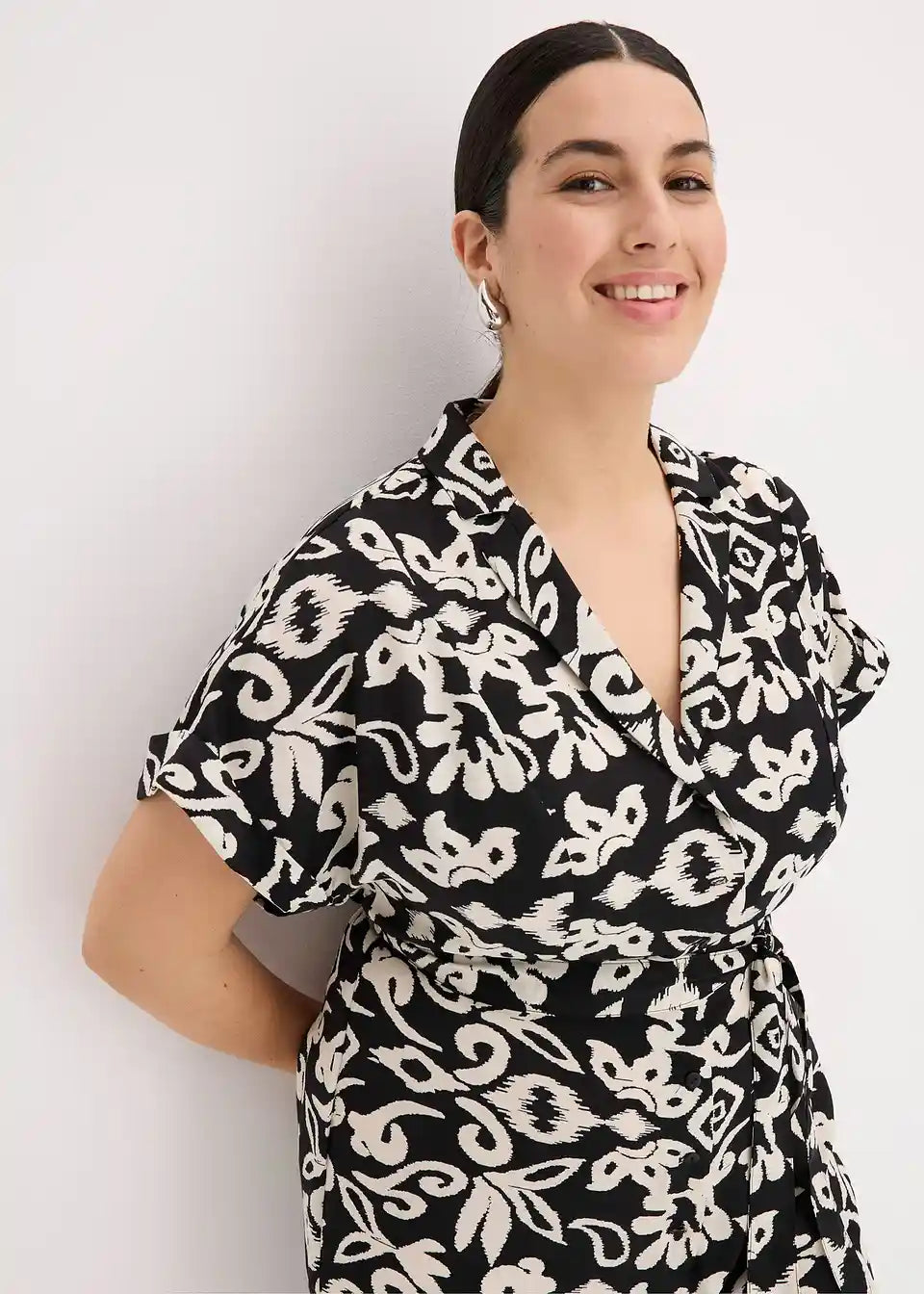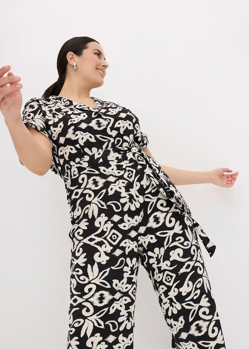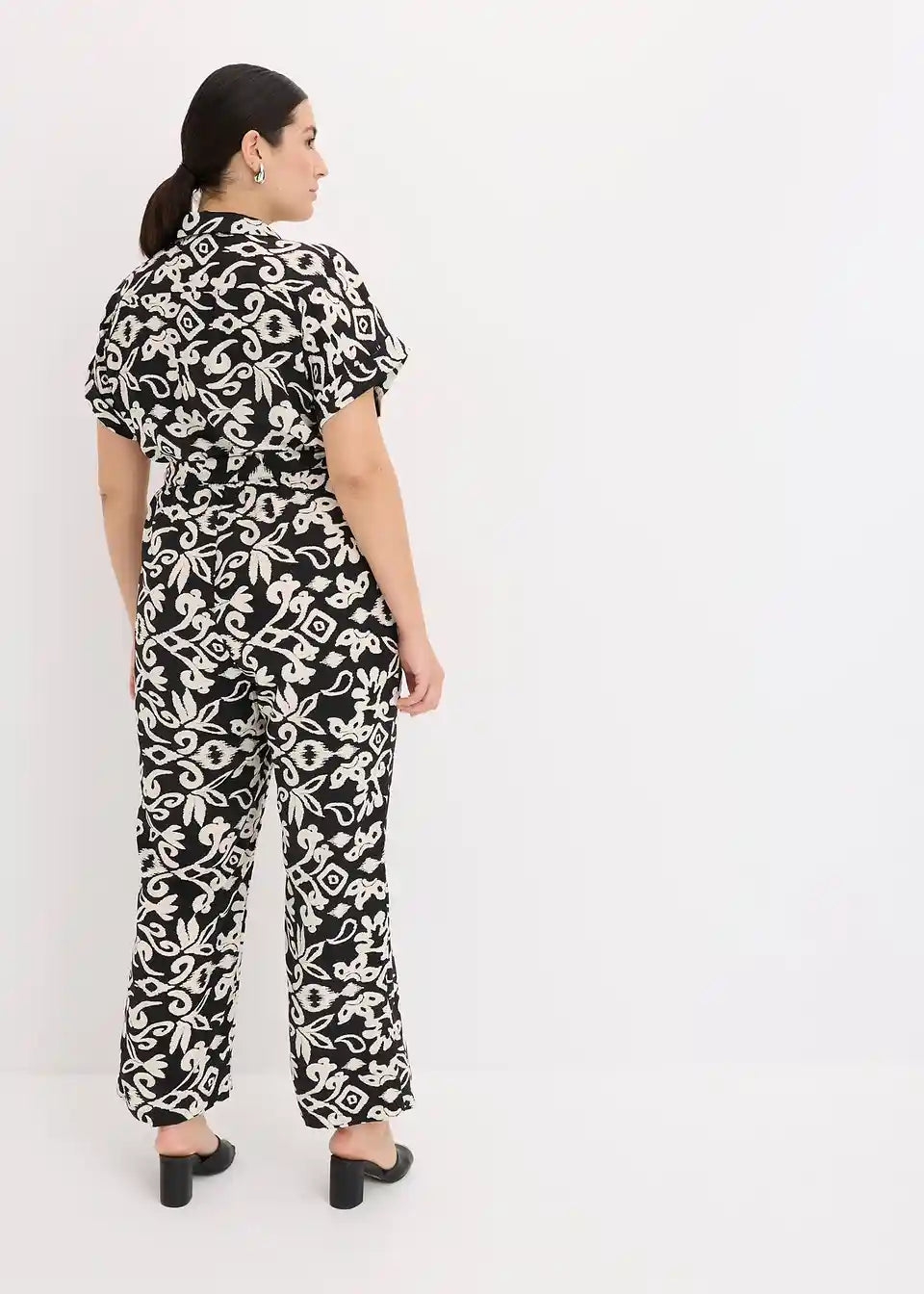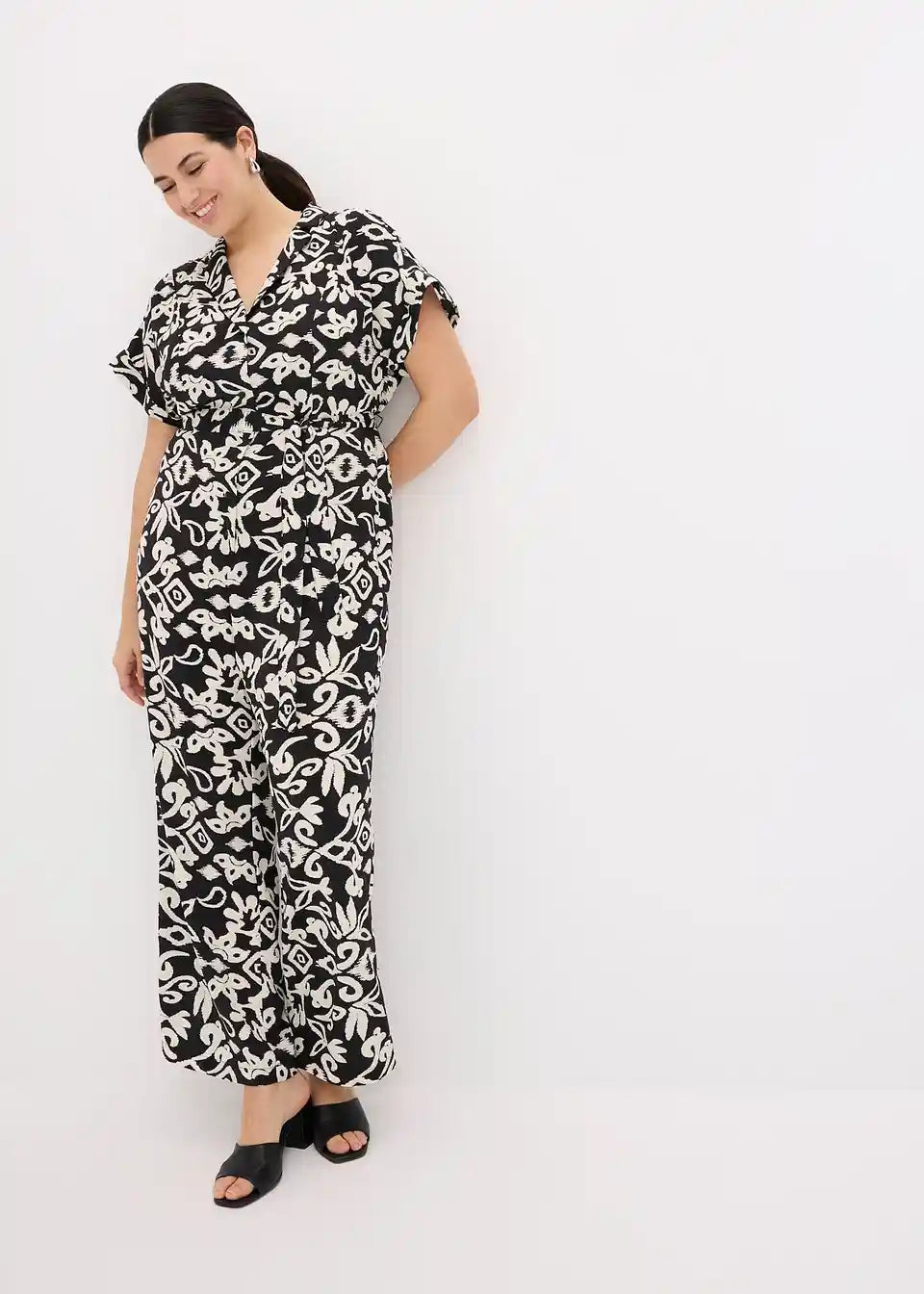 Modno tiskani Jumpsuit s širokimi hlačnicami.