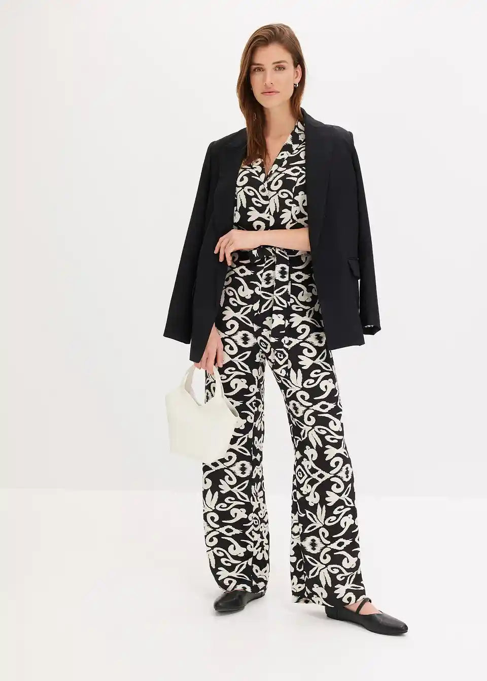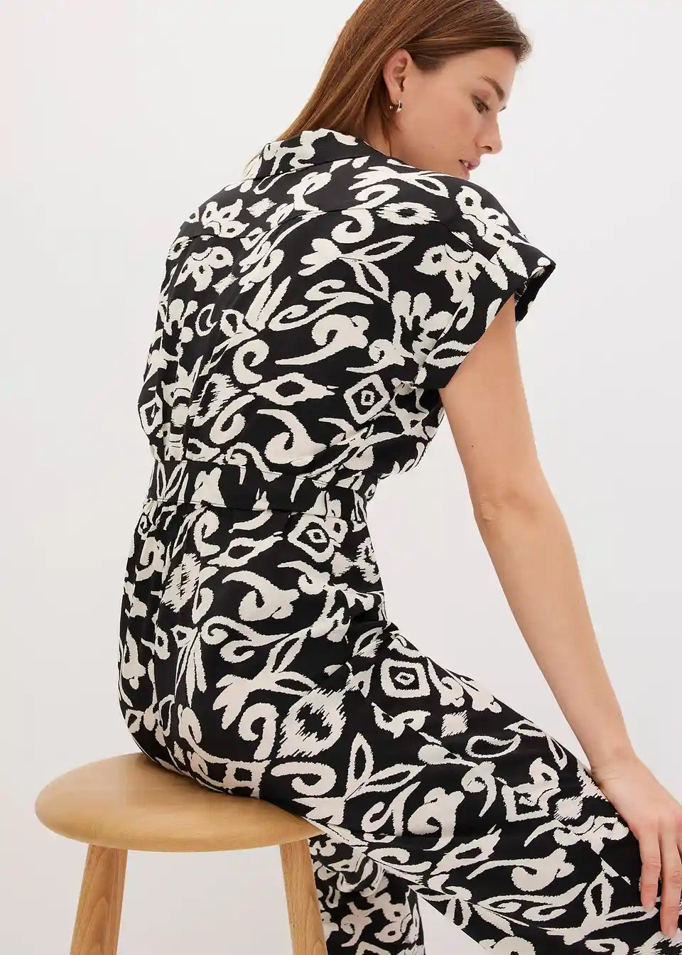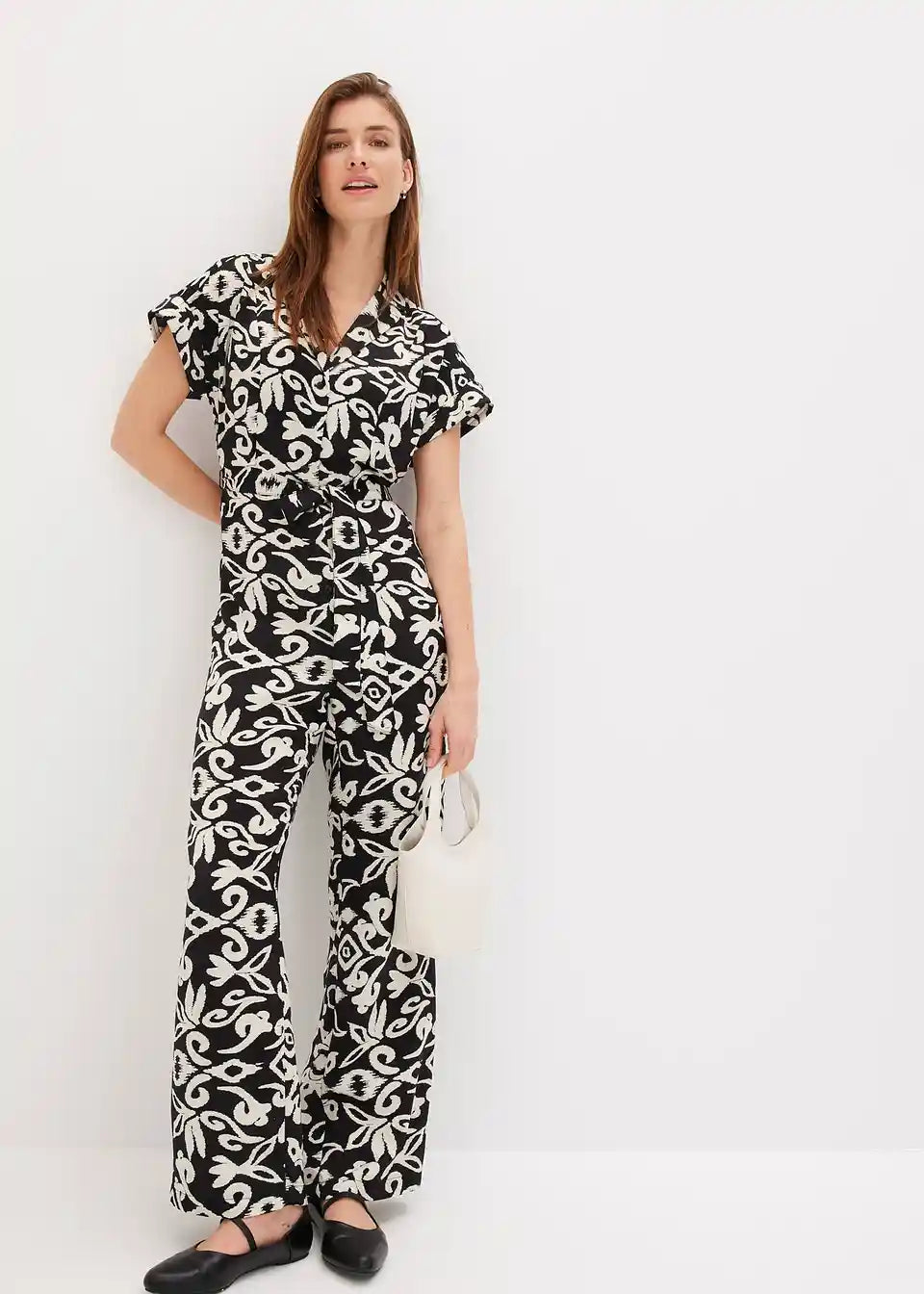 Modno tiskani Jumpsuit s širokimi hlačnicami.