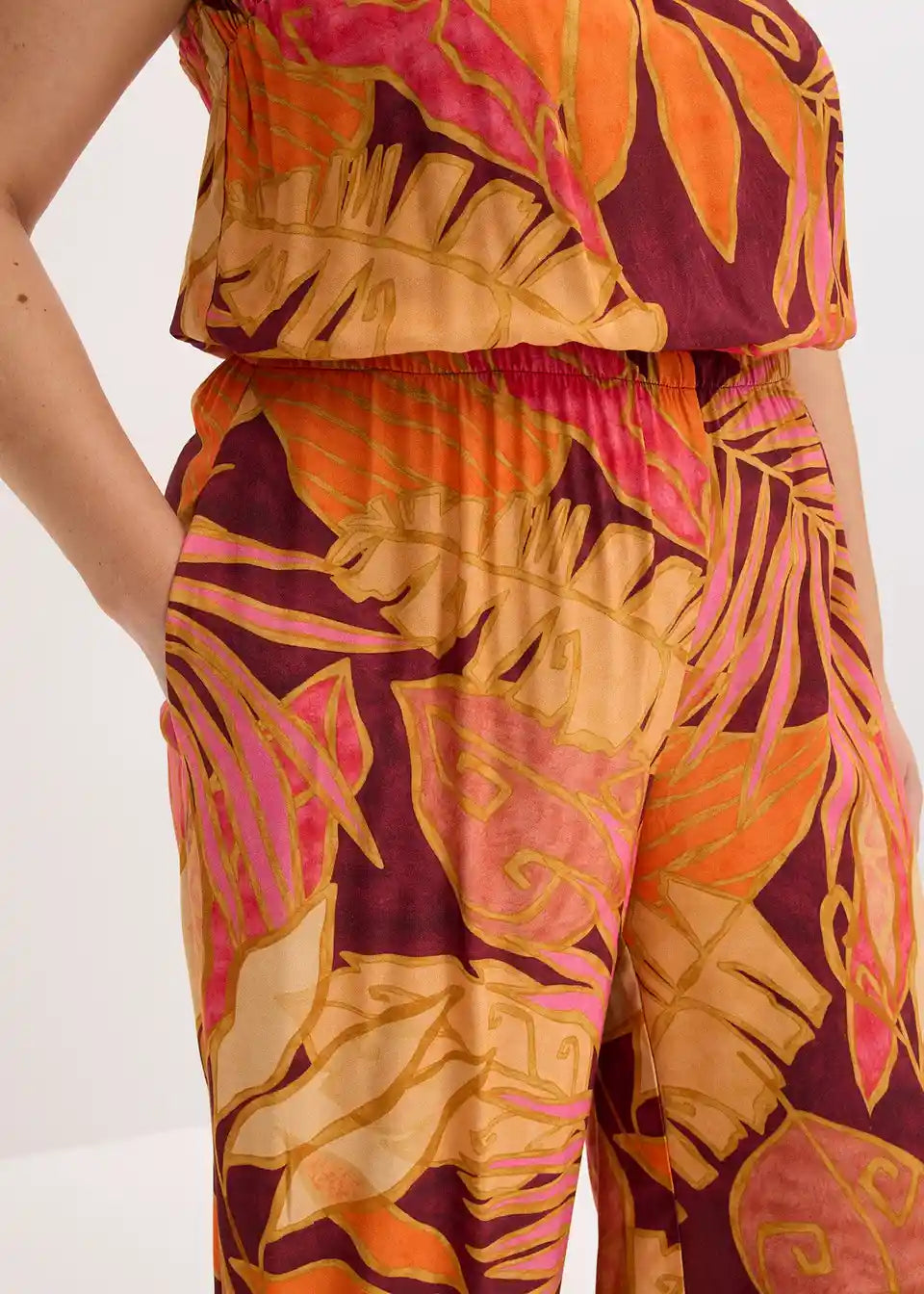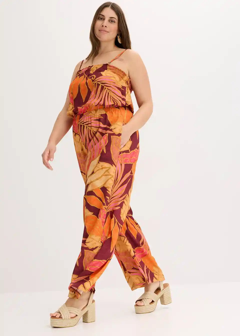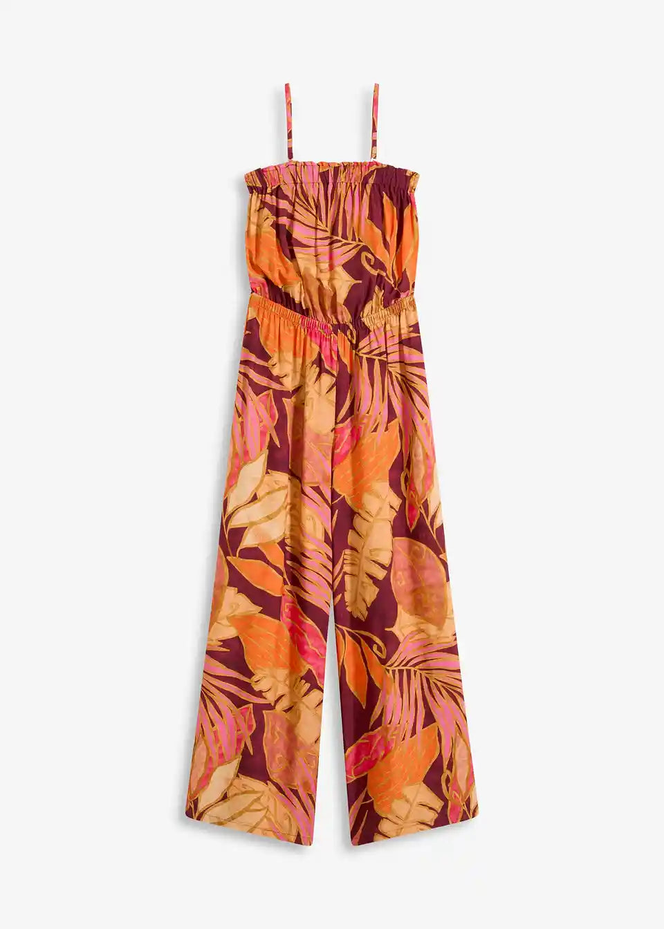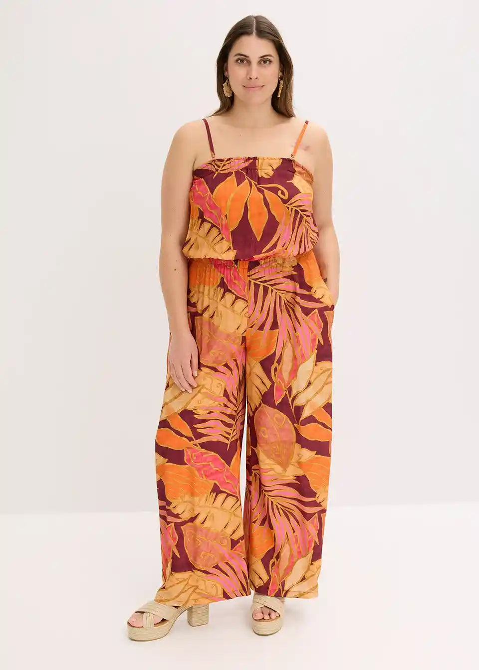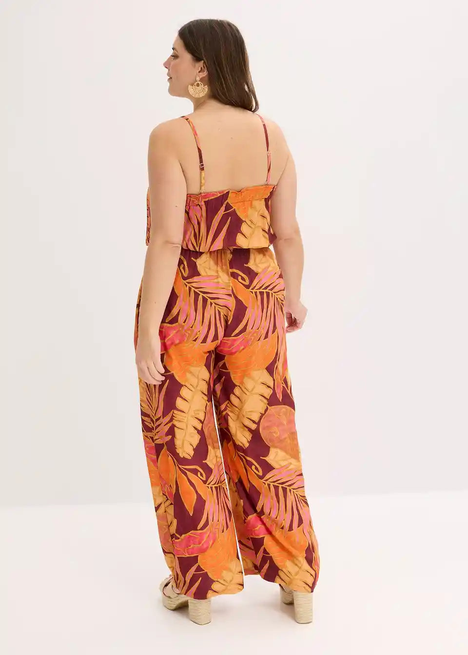 tiskani Jumpsuit iz tekoče viskoze z nastavljivimi naramnicami Spaghetti in elastiko v pasu