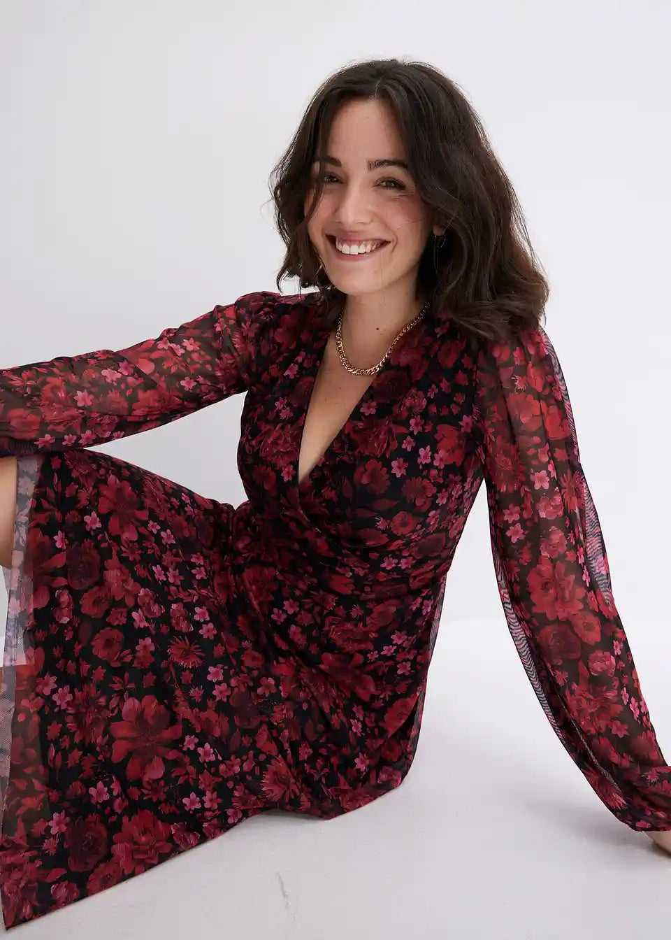 ženstveno mrežasto midi krilo s cvetličnim potiskom