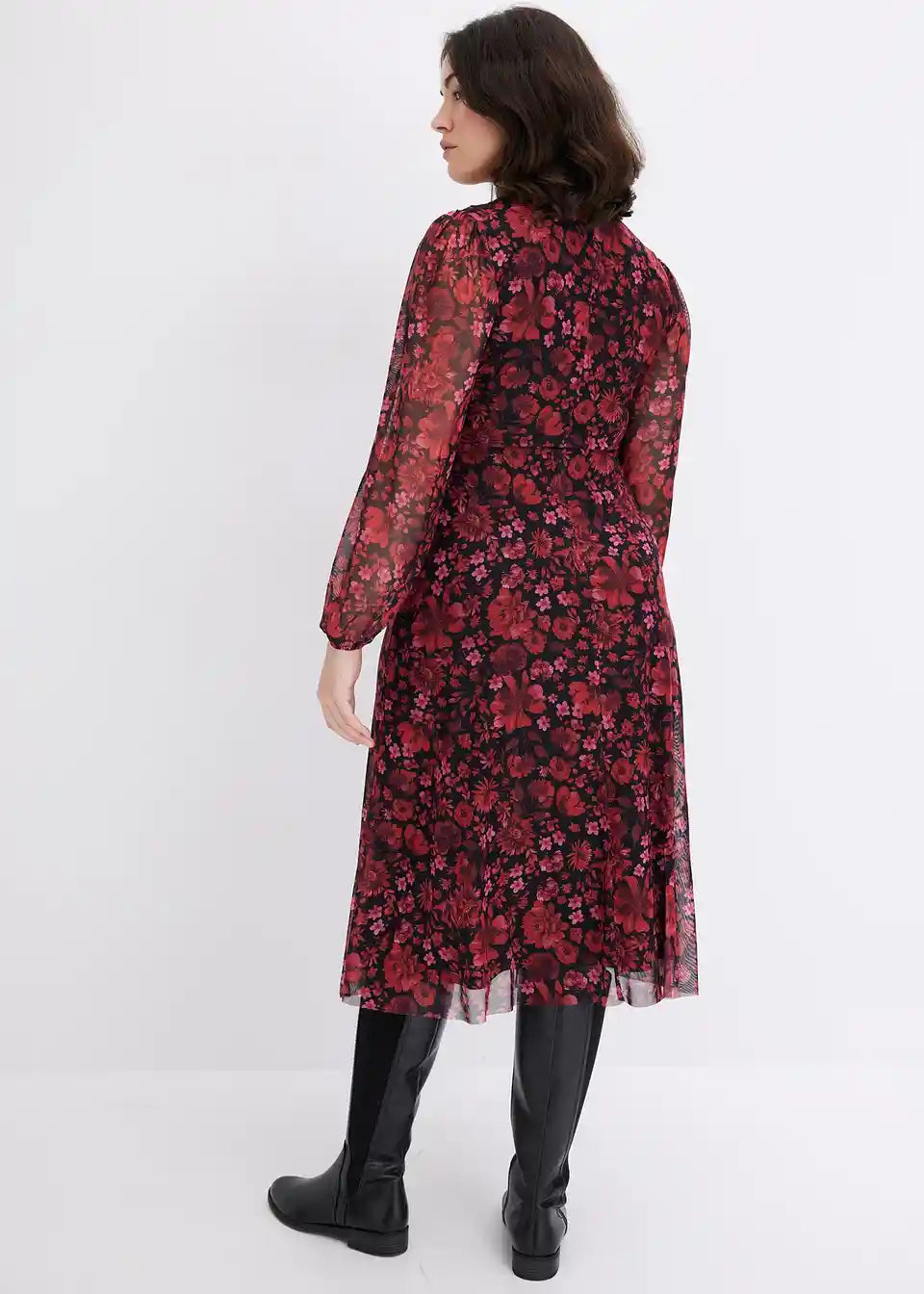Potiskana mrežasta midi obleka