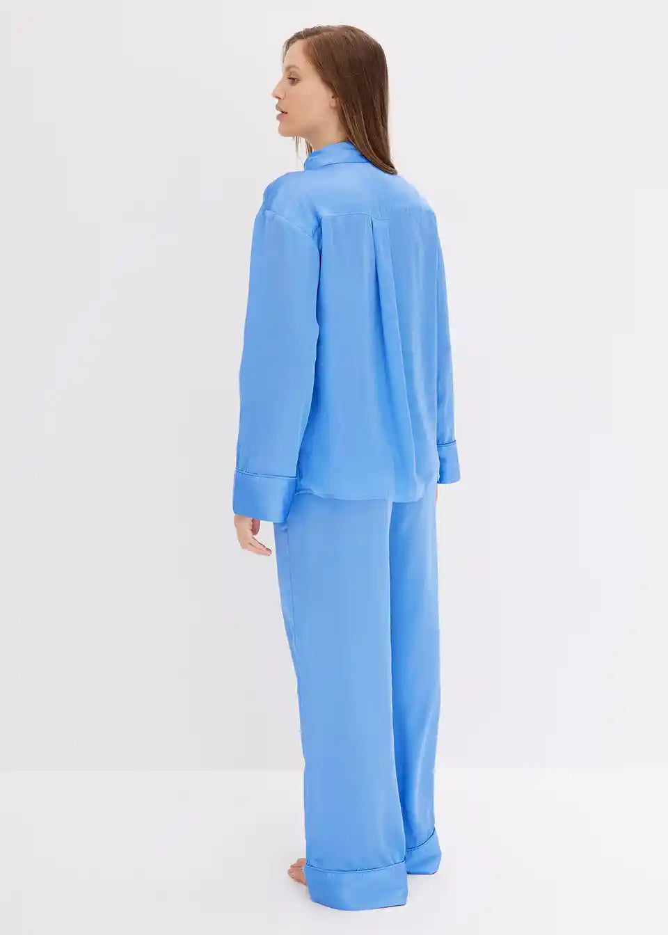 Moderna široko krojena pižama iz satena z prsnim žepom