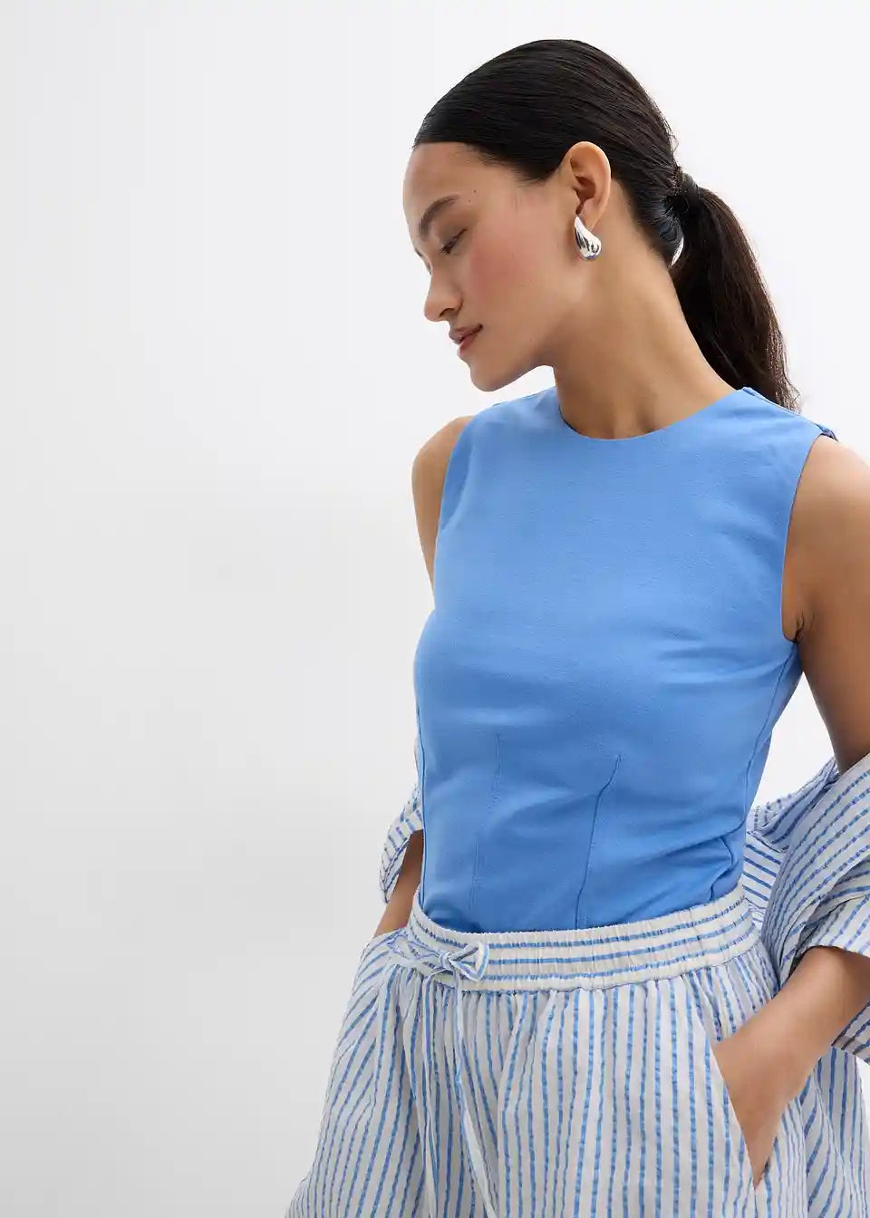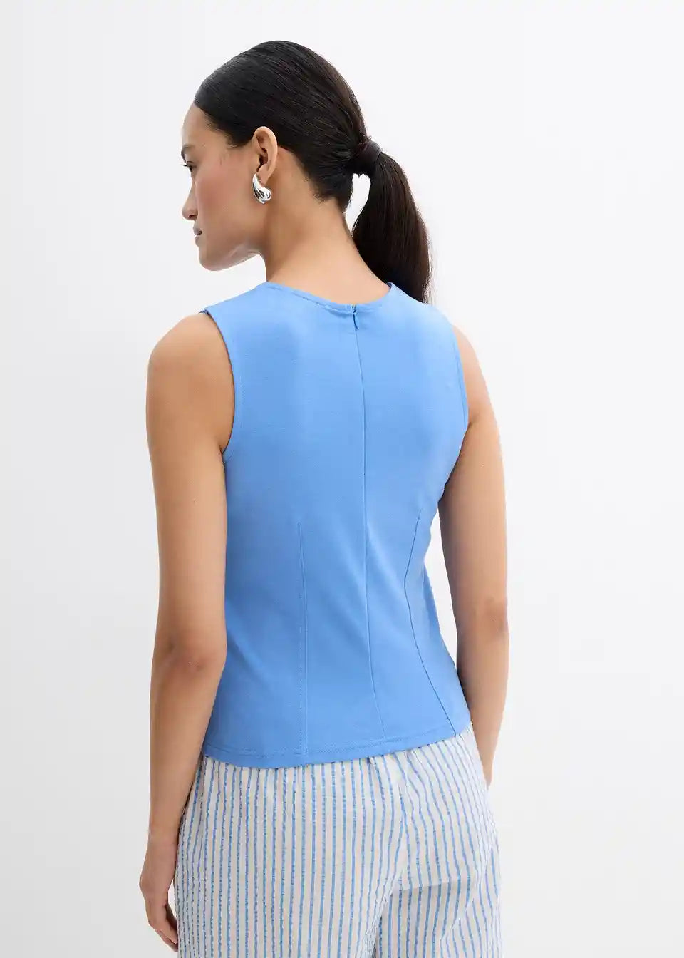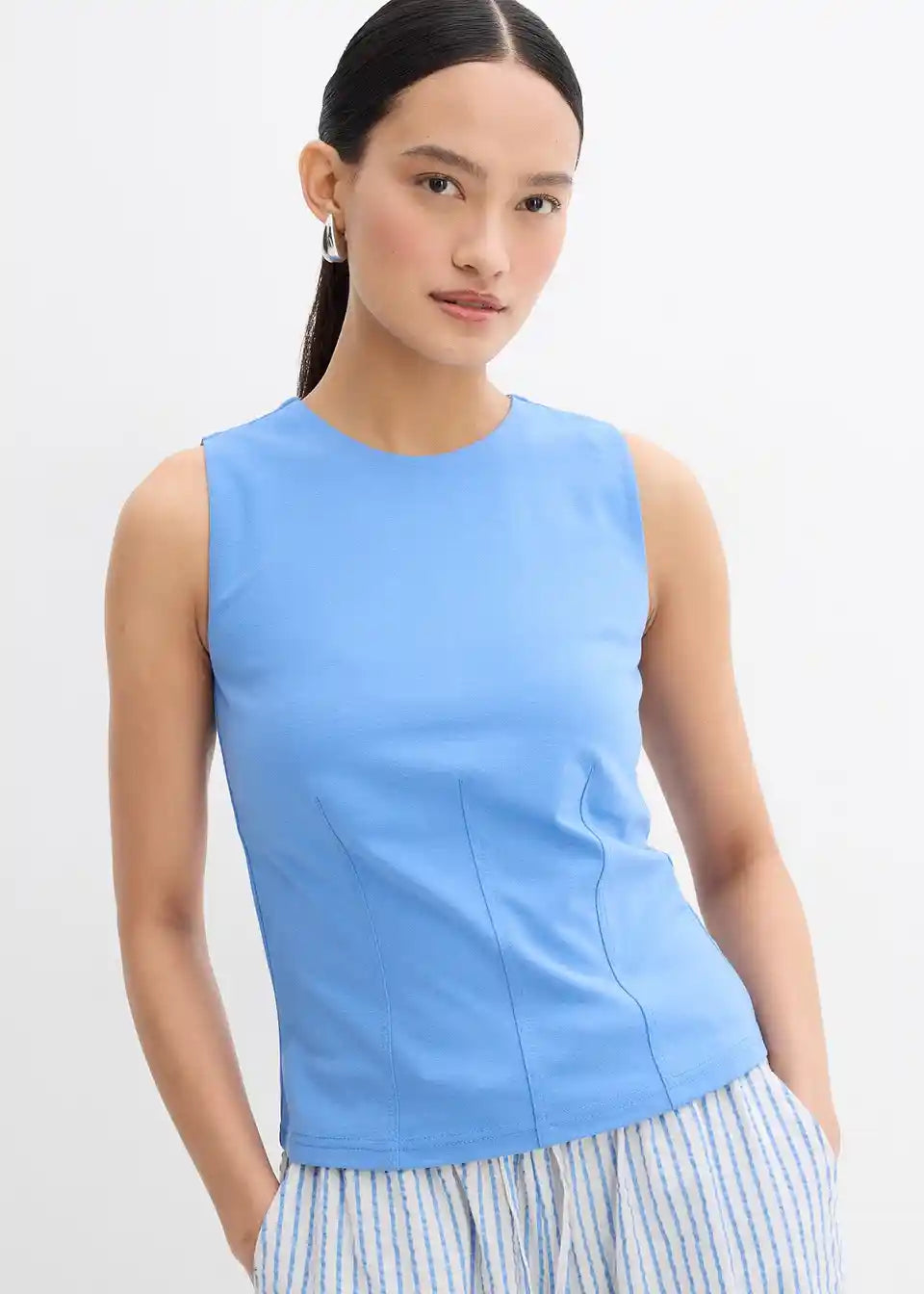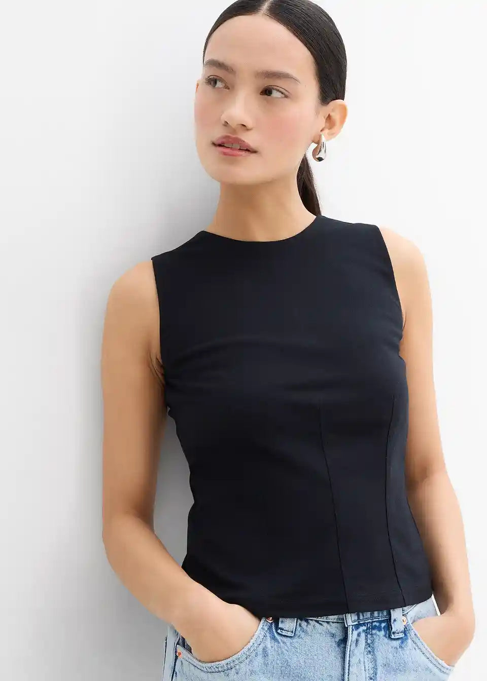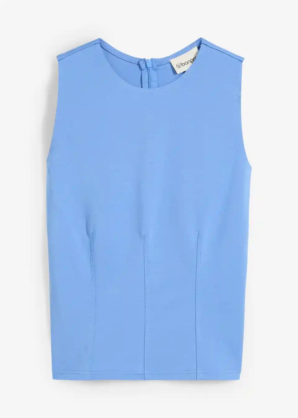 Teliran top z okroglim izrezom in skrito zadrgo v šivu na hrbtni strani