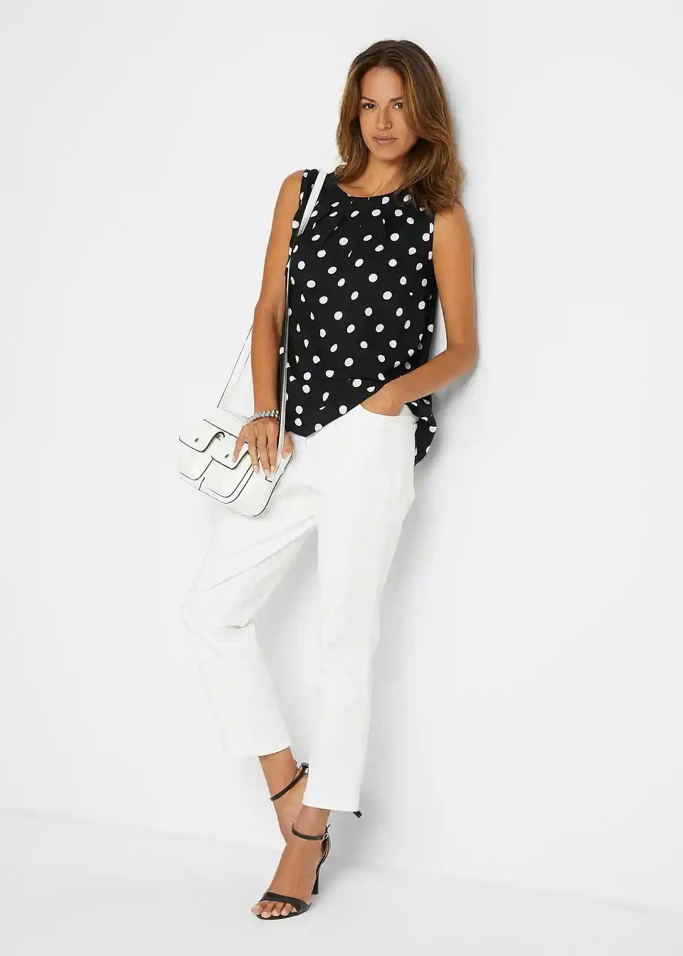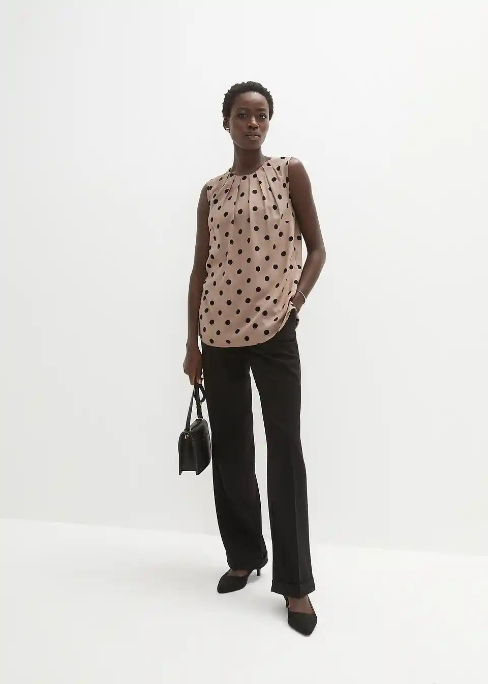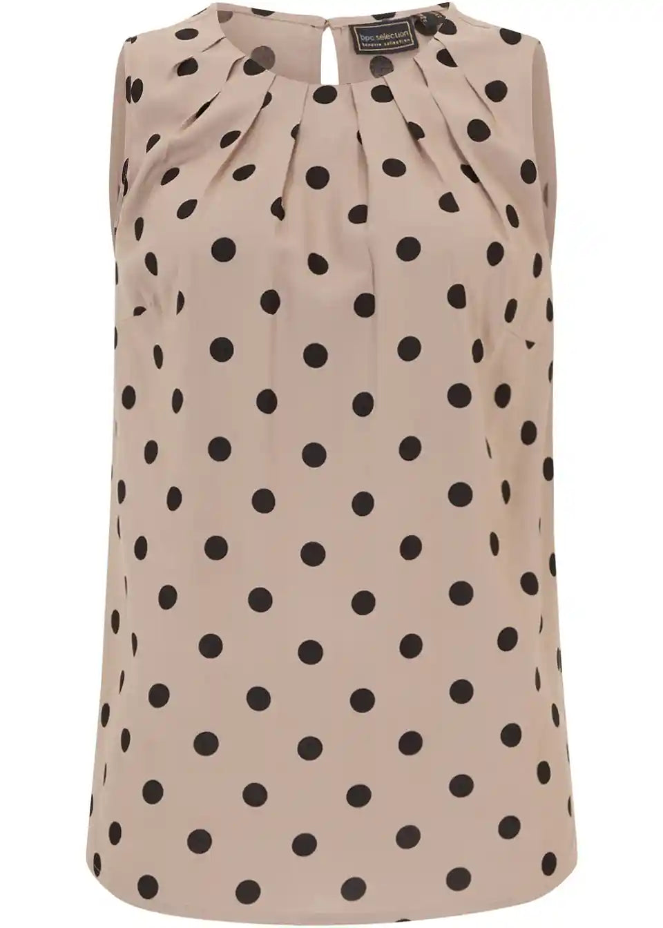Prečudovit pikčast top z majhnimi gubami na izrezu