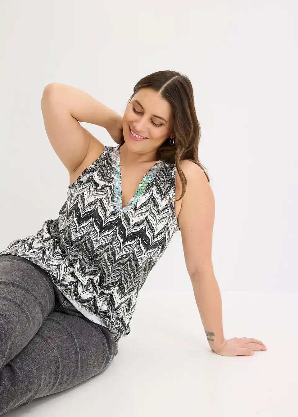 ženstven top s pailetkami