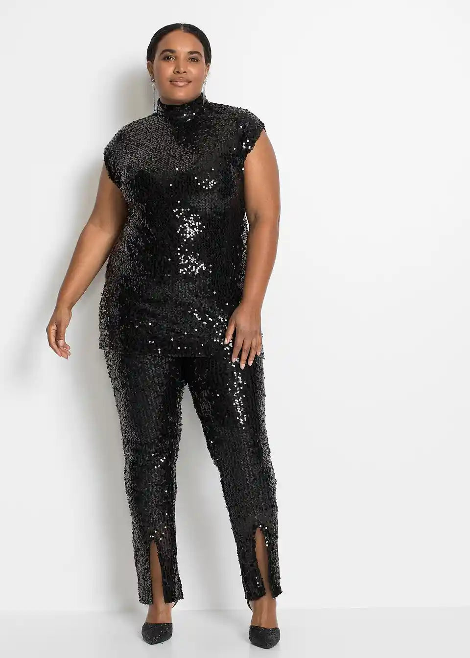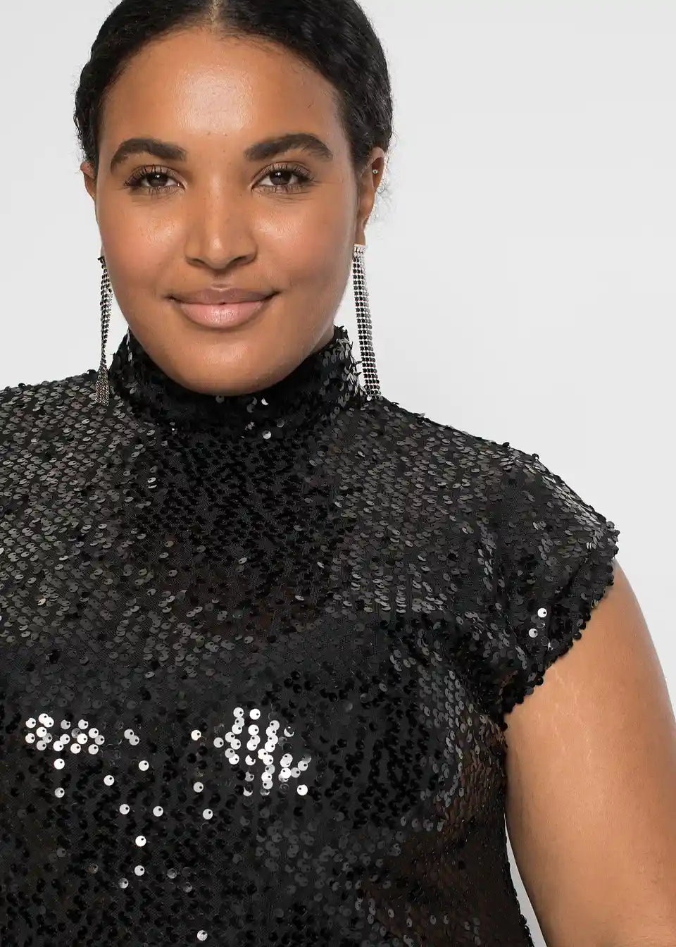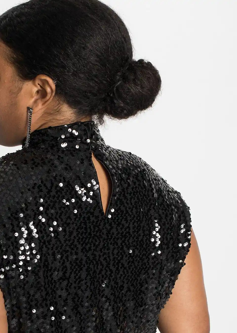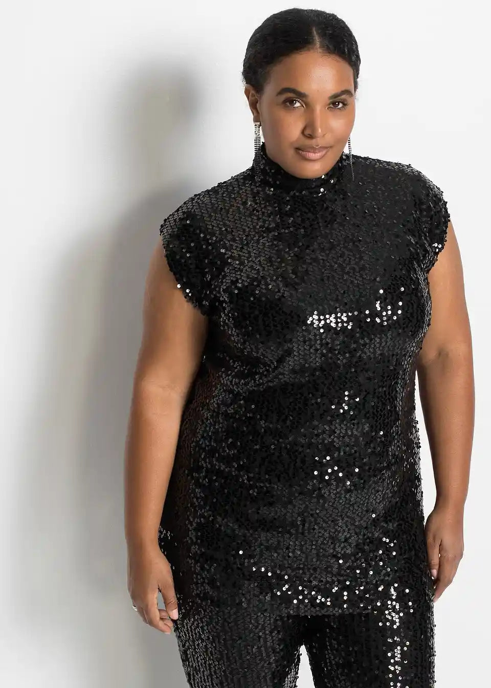 Slavnostno in moderno: Pailletten-top z ovratnikom in trendnimi rameni
