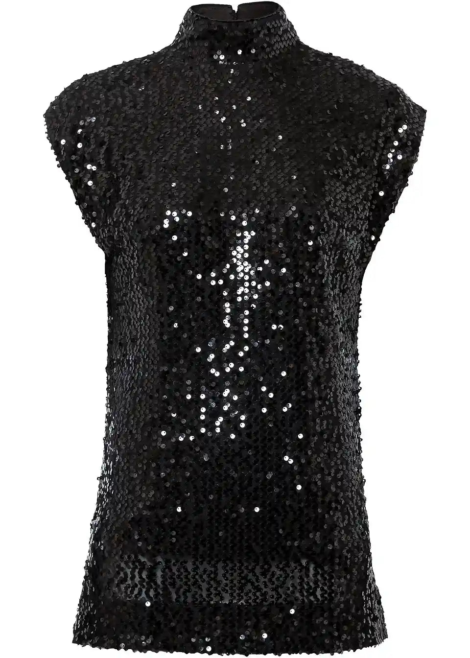Slovesen in sodoben: Top s Paillettenami z ovratnikom in trendovskimi rameni