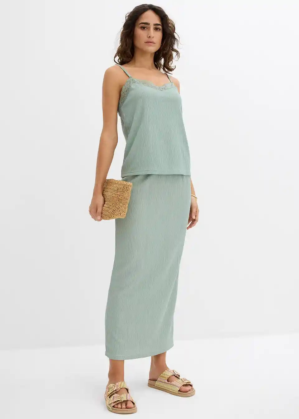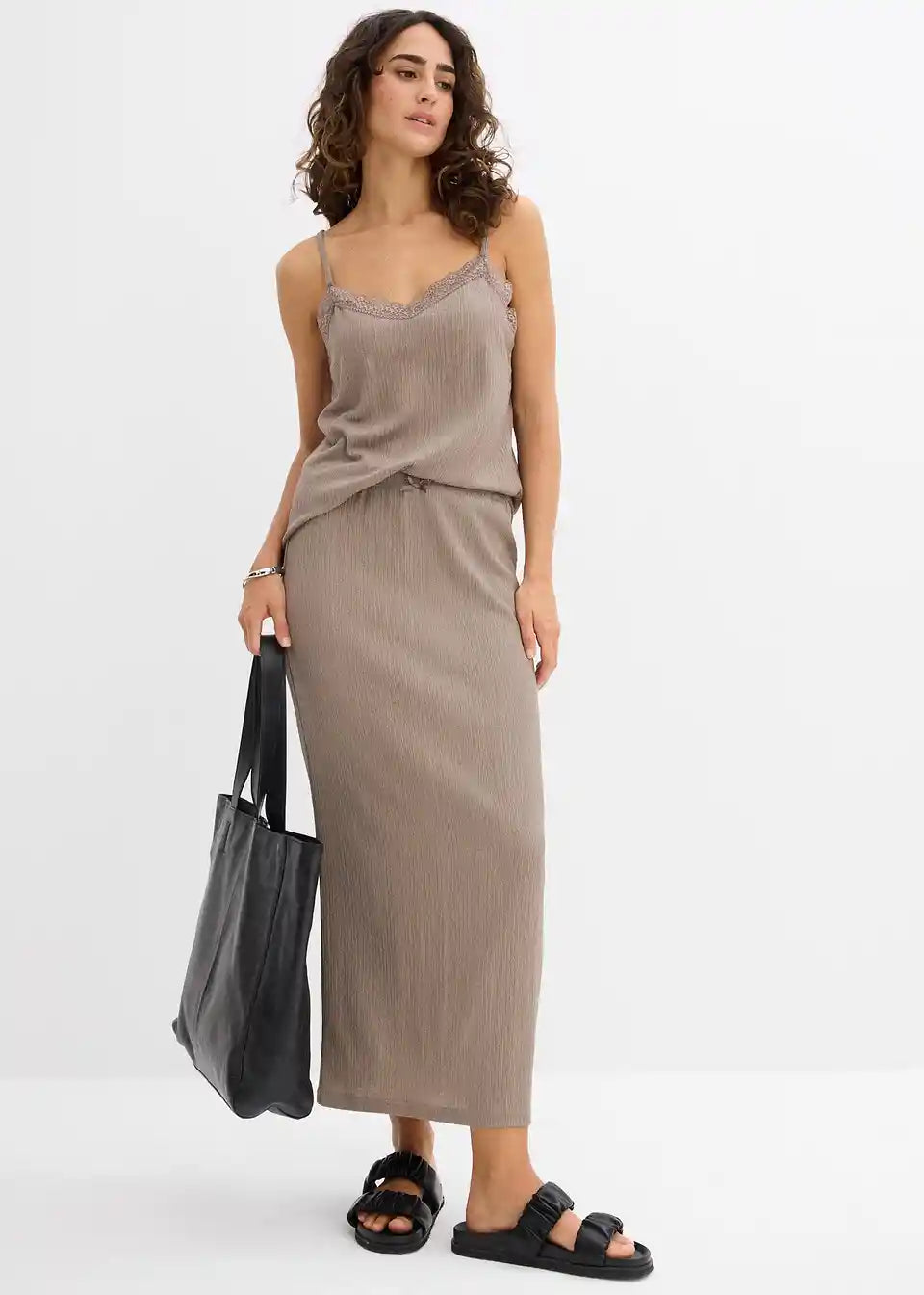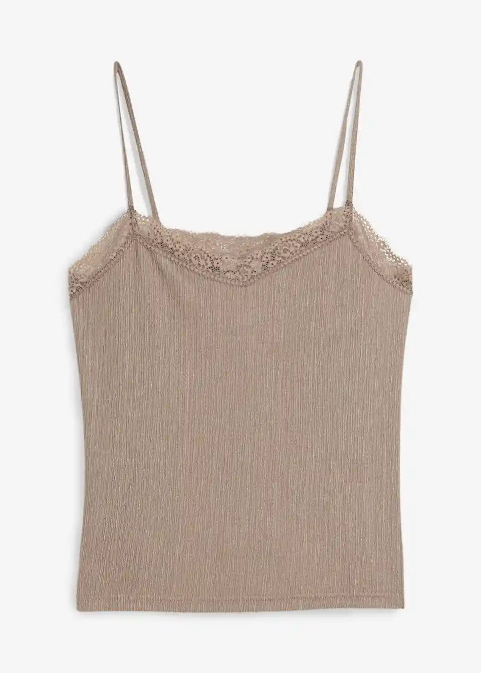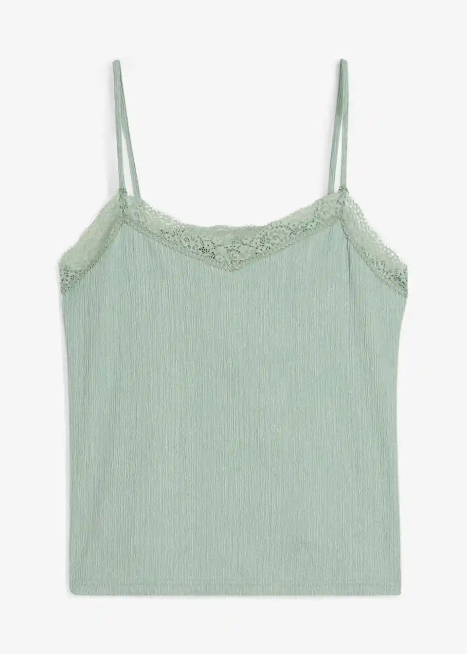 Trendovski top s tankimi naramnicami iz krep blaga s čipkastim vložkom