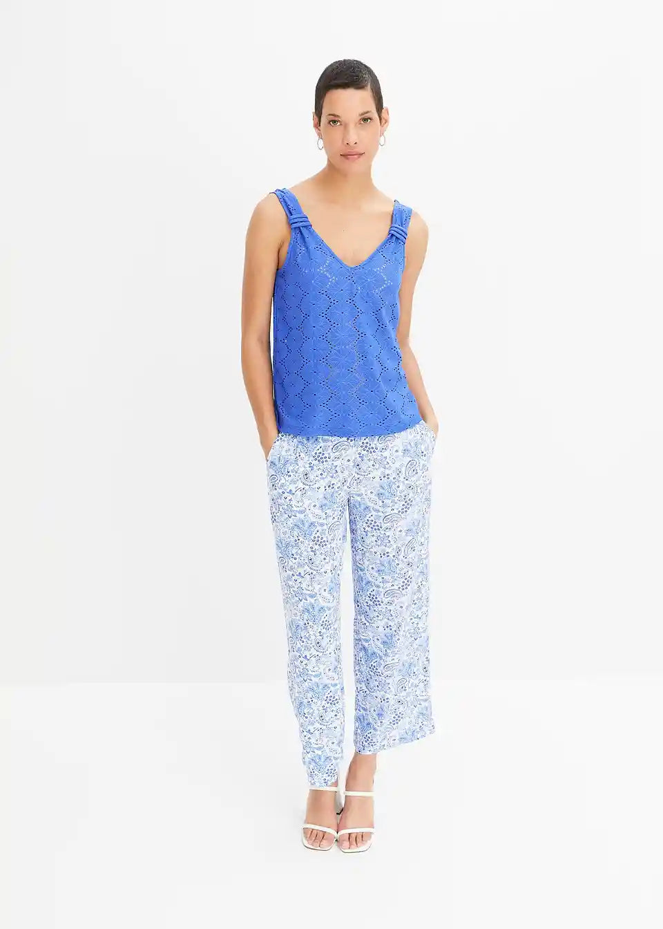 Top z luknjičasto vezenino