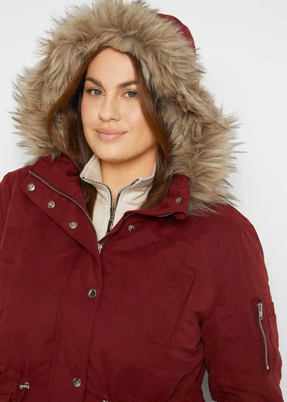 zgornji material: 58% poliester, 42% bombaž, podloga: 100% poliester, notranja podloga: 100% poliester, umetno krzno: 52% akril, 38% modakril, 10% poliester