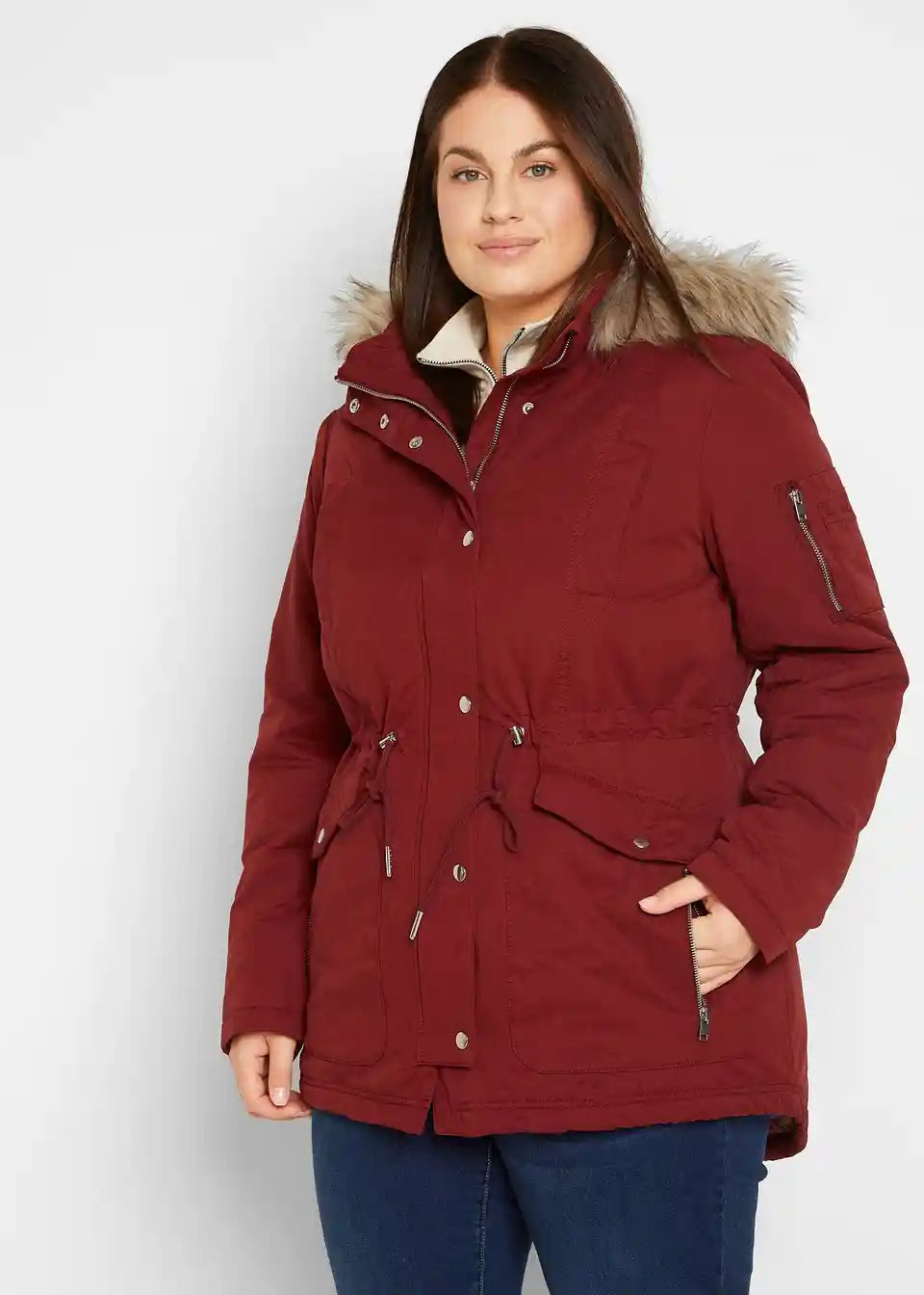 zgornji material: 65% bombaž, 35% poliamid, podloga: 100% poliester, notranja podloga: 100% poliester, umetno krzno: 52% akril, 38% modakril, 10% poliester