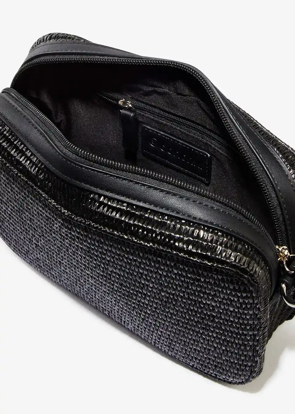Modna torba za čez ramo s slamnatim videzom in nastavljivim ramenskim paščkom