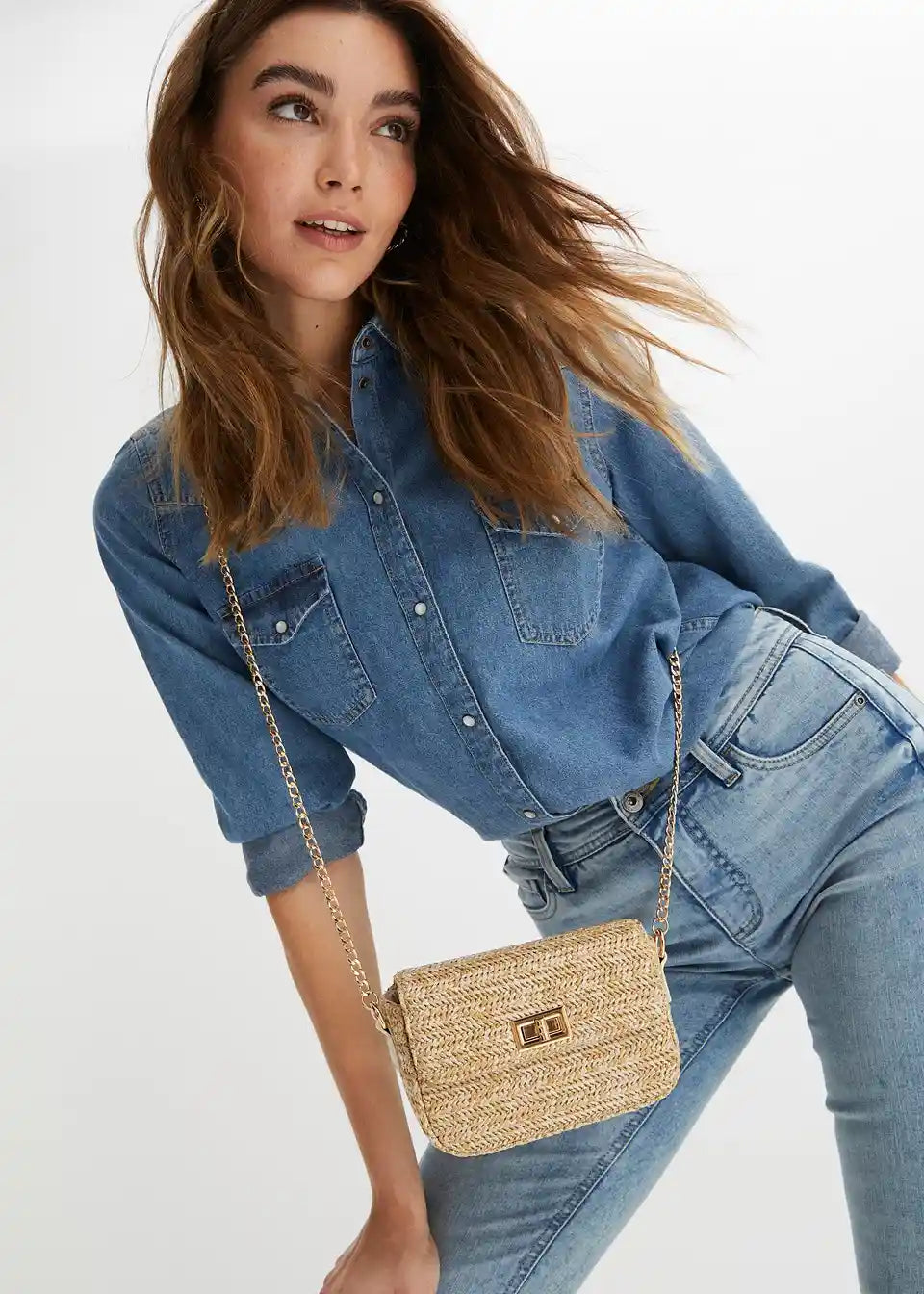 Poletna torbica za čez ramo z detajli v zlati barvi