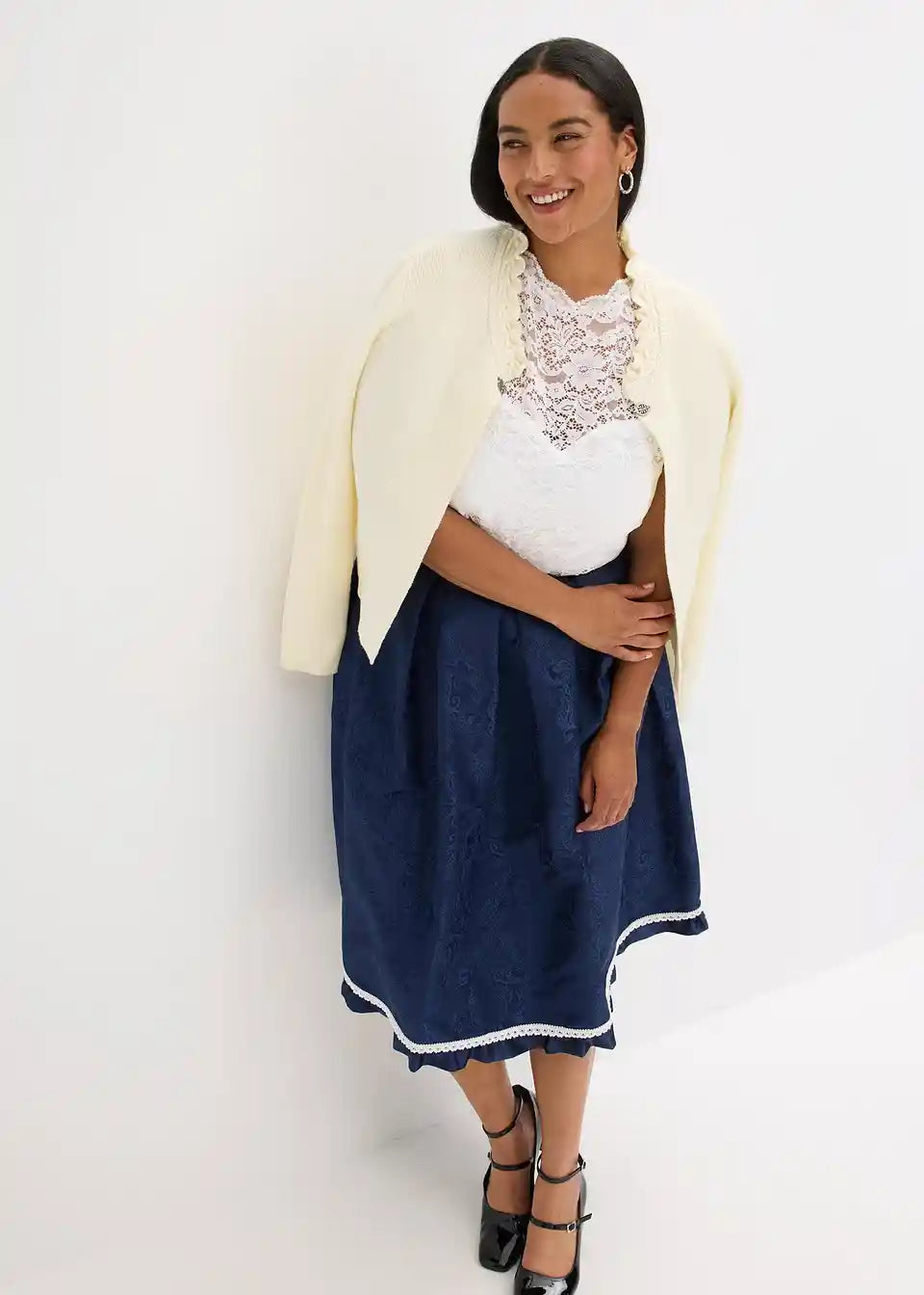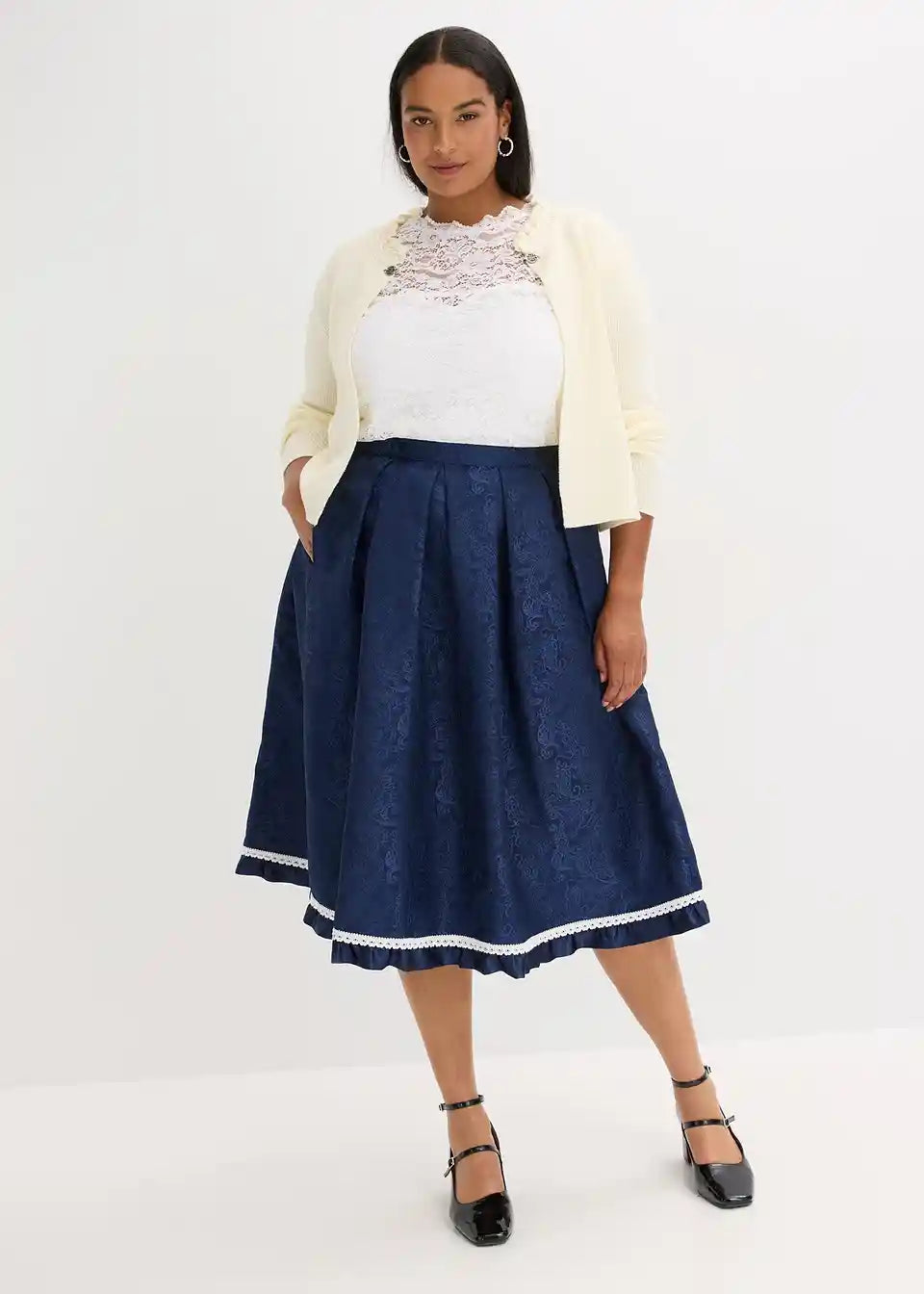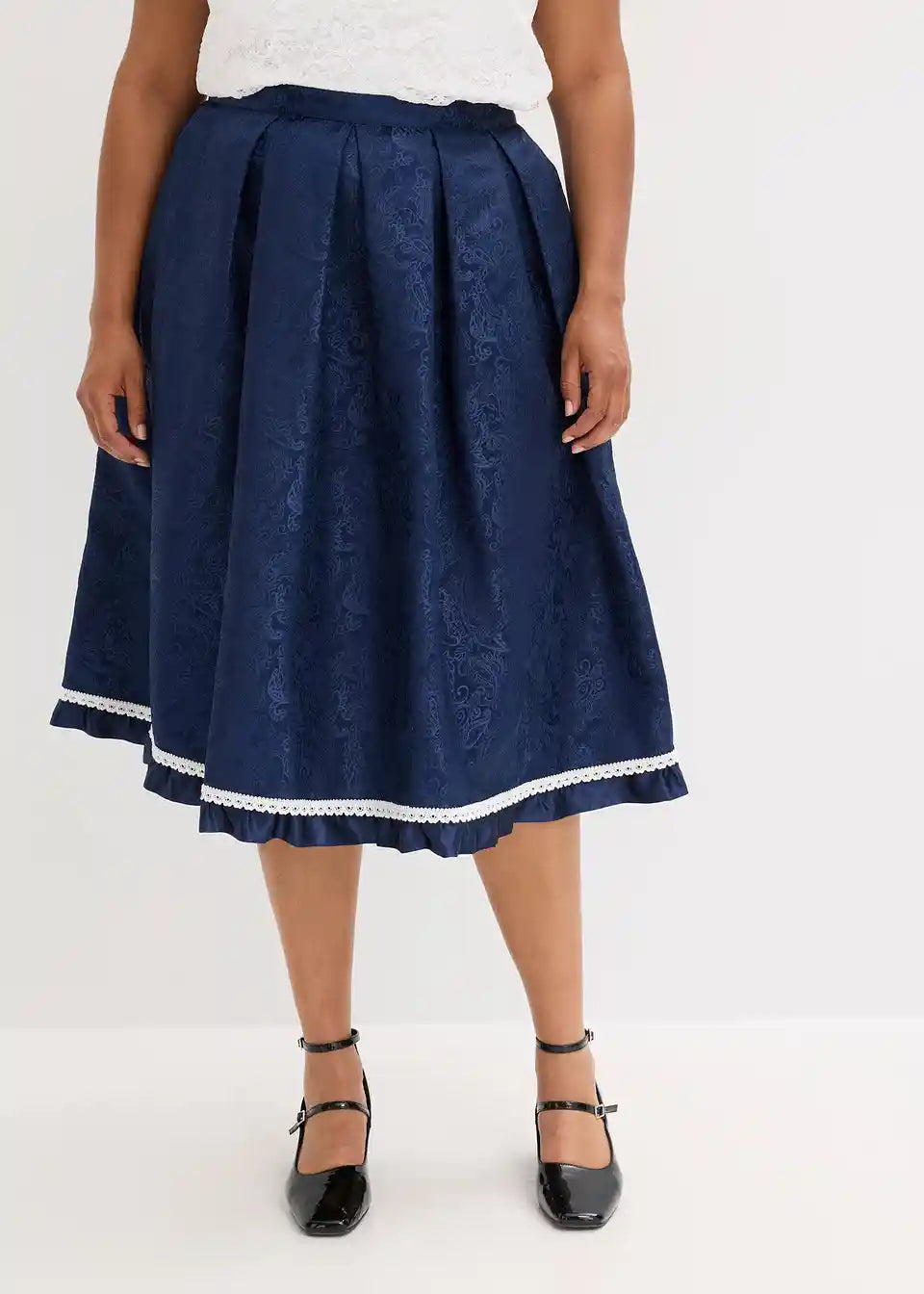 Moderno in ženstveno: Trachten krilo v midi dolžini iz sijočega žakarda s čipkastim robom