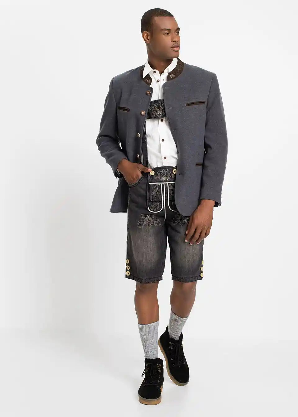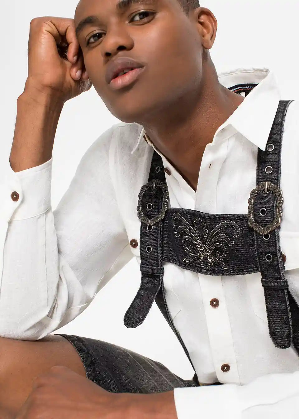 Te moške kratke kavbojke znamke bpc selection so okusna alternativa usnjenim hlačam. Odlikujejo jih skrbno vezena kavbojka in čudovito pranje. Gumbi v videzu jelenovega roga zaokrožijo tradicionalni videz. Tradicionalne kratke kavbojke v Regular Fit imajo zapiranje spredaj. Dolžinsko nastavljive naramnice z bogatimi zaponkami skrbijo za pravi značaj Wiesn.
