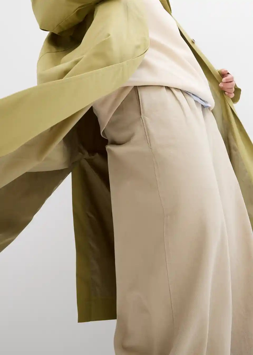 Ohlapen Trenchcoat s klasično silhueto, širokim pokončnim ovratnikom in nastavljivimi manšetami