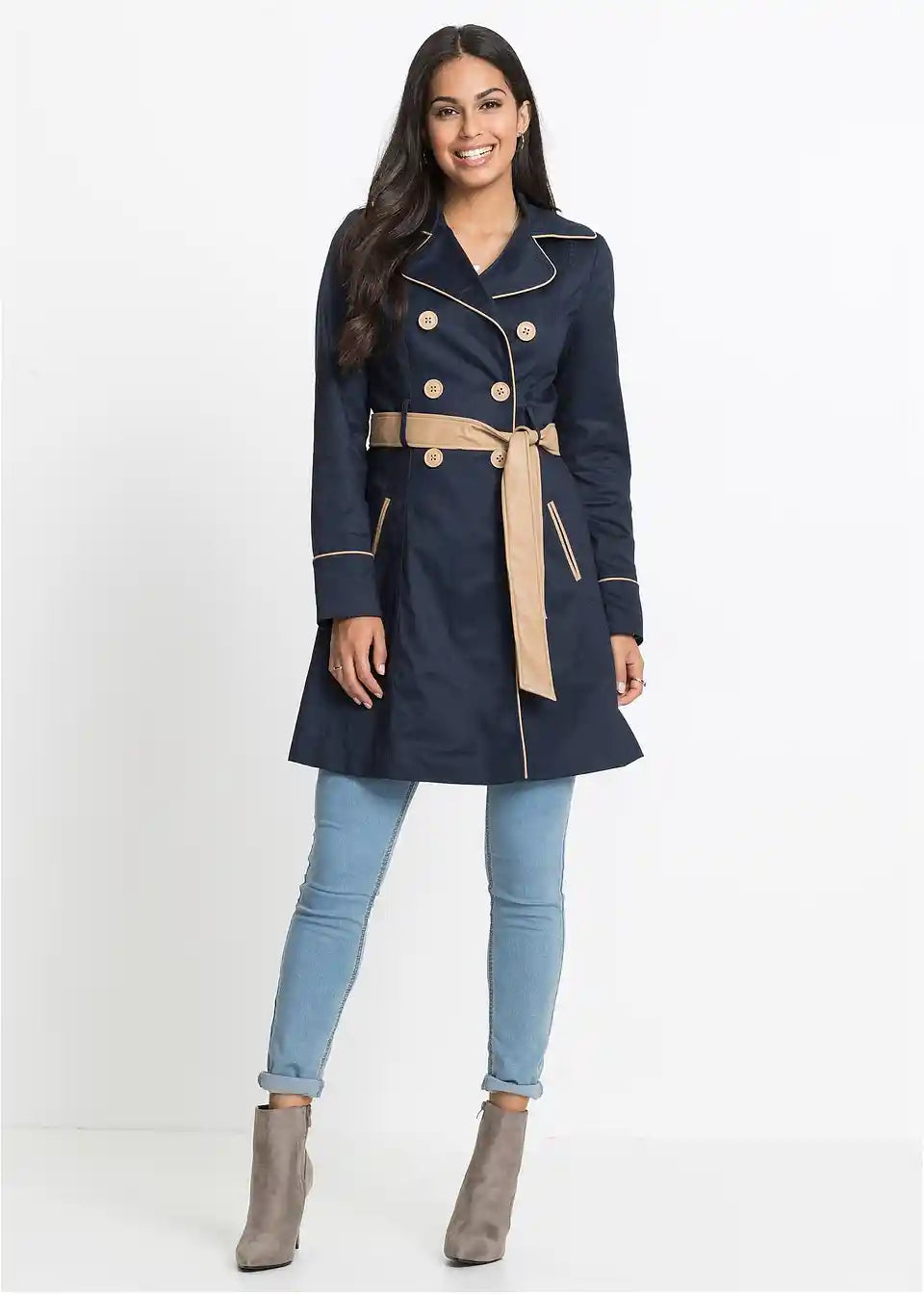 Moderen trenčkot s časovno neomejenimi barvnimi kontrasti.