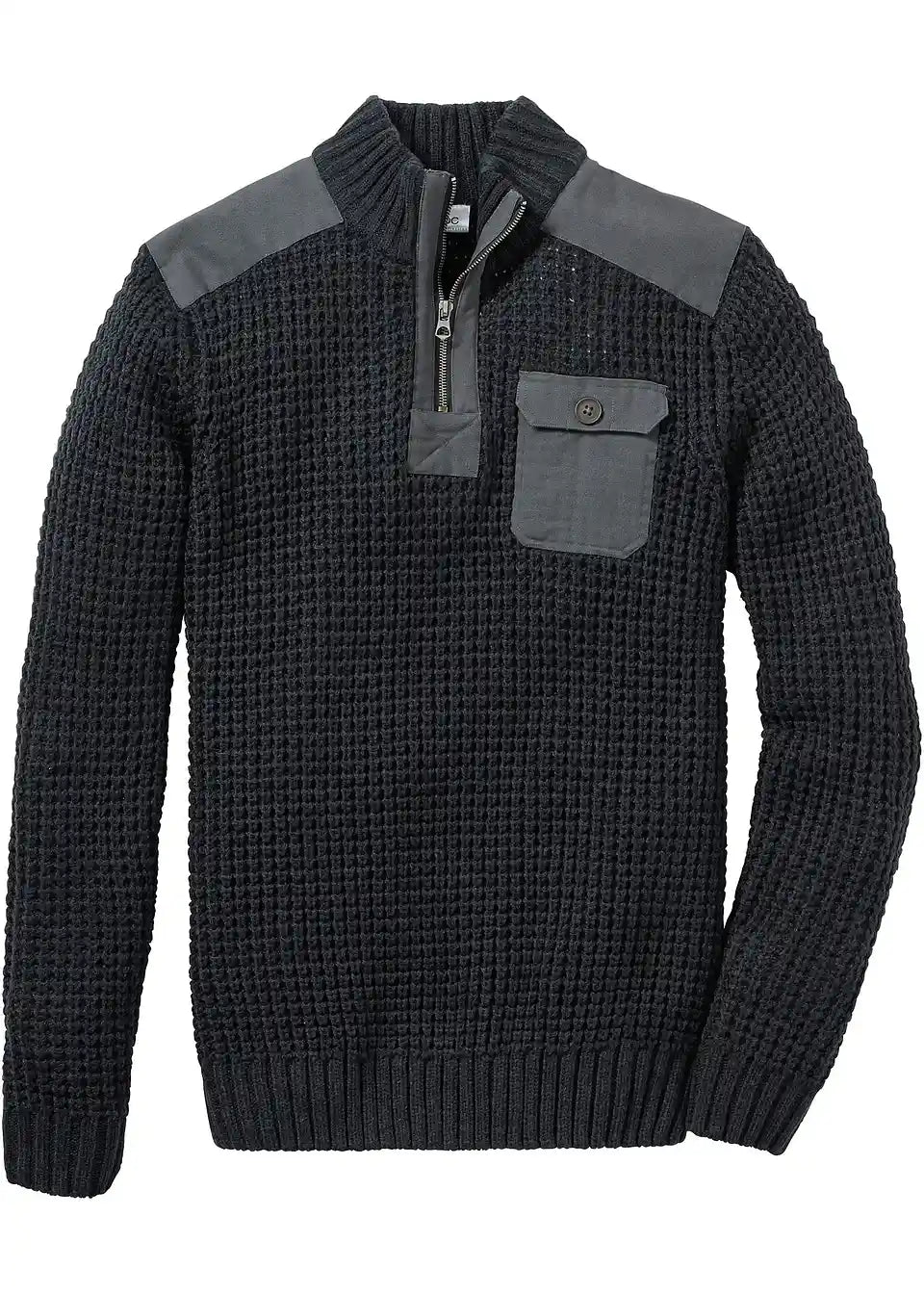 Ta udoben moški pulover iz aktualne kolekcije Johna Banerja je pravi vsestranski kos za prosti čas. Ležeren pulover iz grobega pletenja ima stoječ ovratnik z zadrgo in dolge rokave. Našit prsni žep in tekstilni dodatki na ramenih poudarjajo modni videz puloverja. Odlično se kombinira z jeansom in chinos hlačami.
