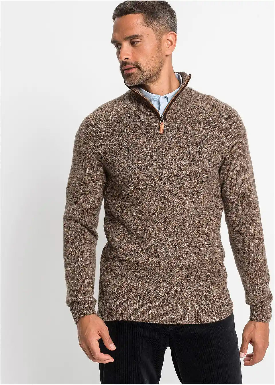 Aktualen pleten vzorec, trendovski meliran videz in topla mešanica volne