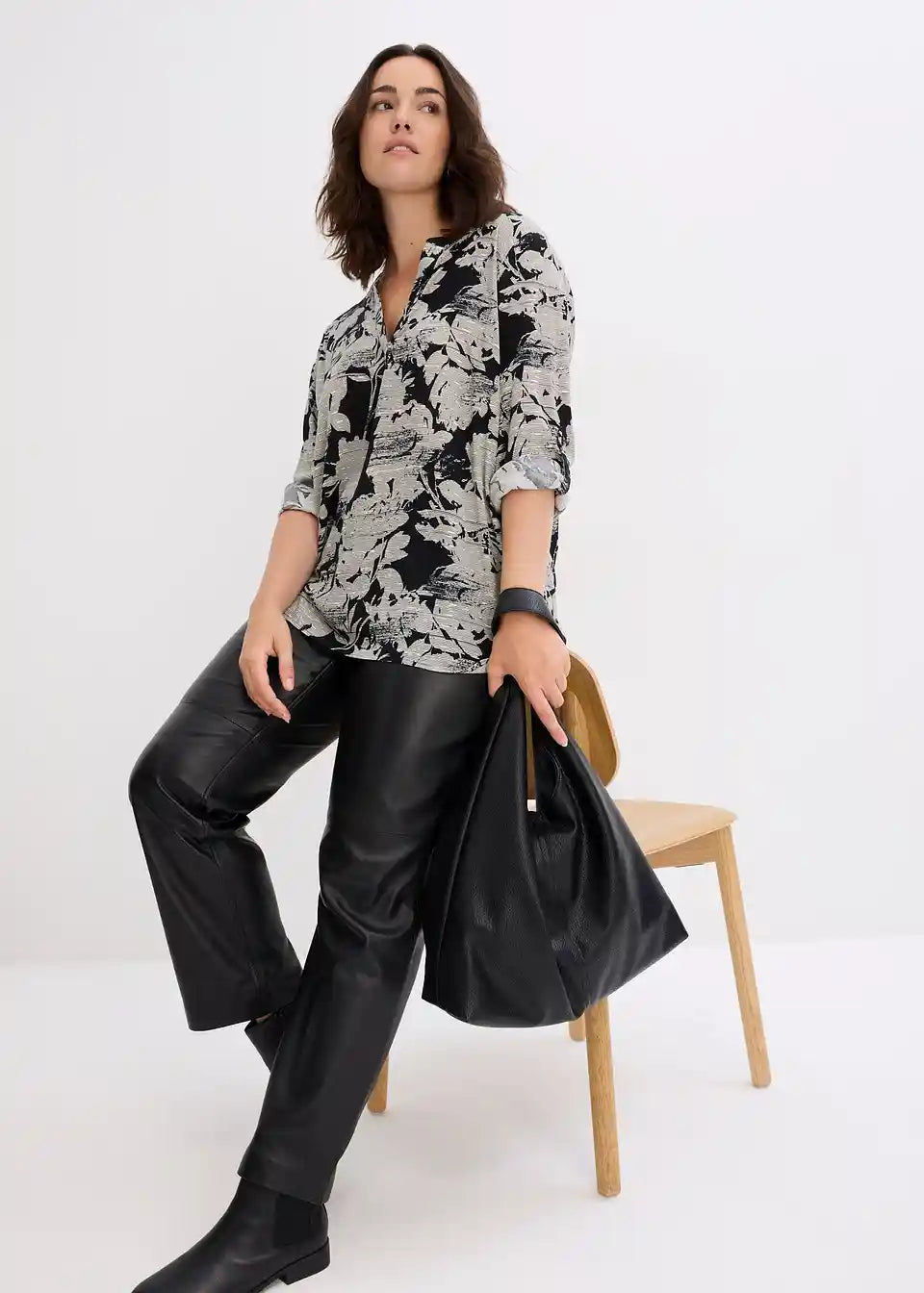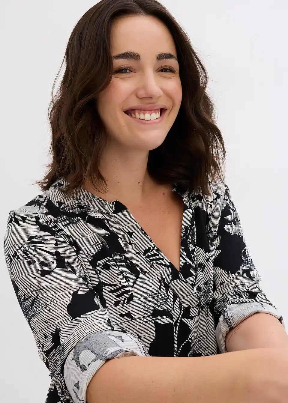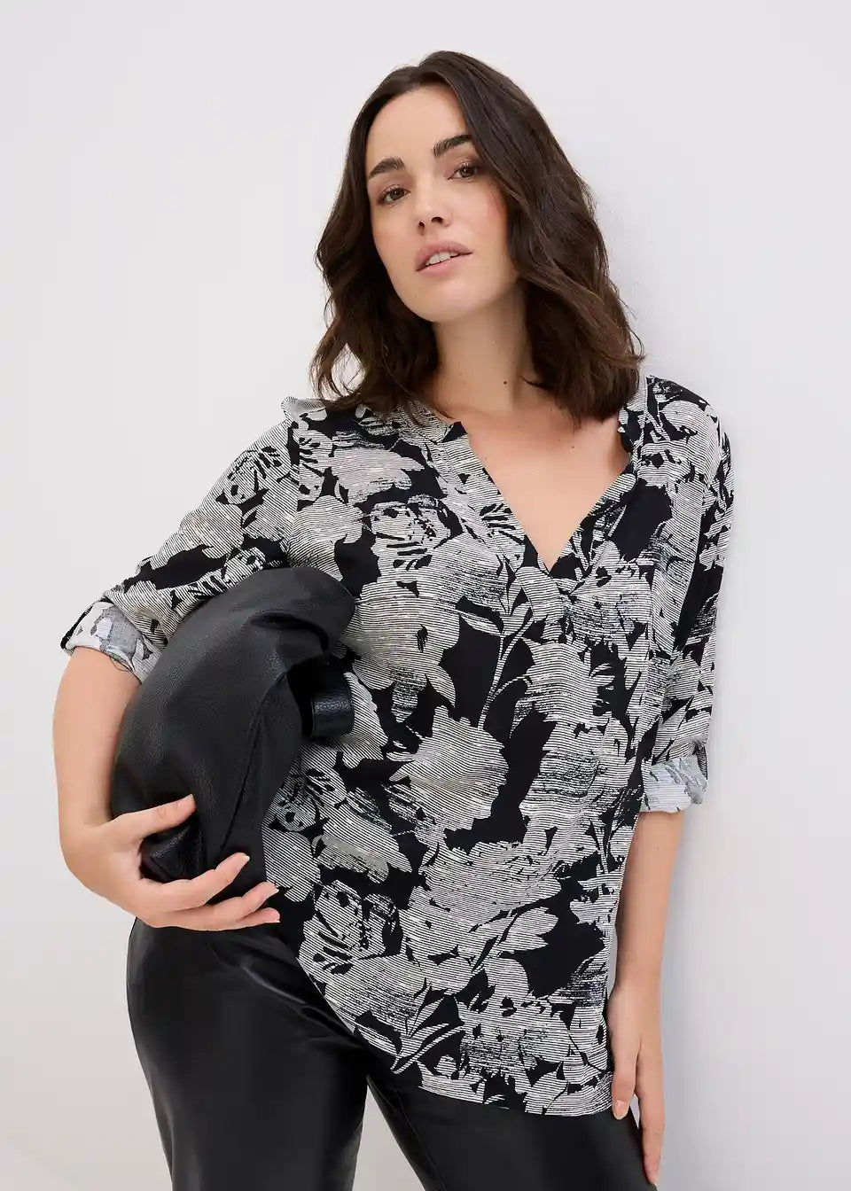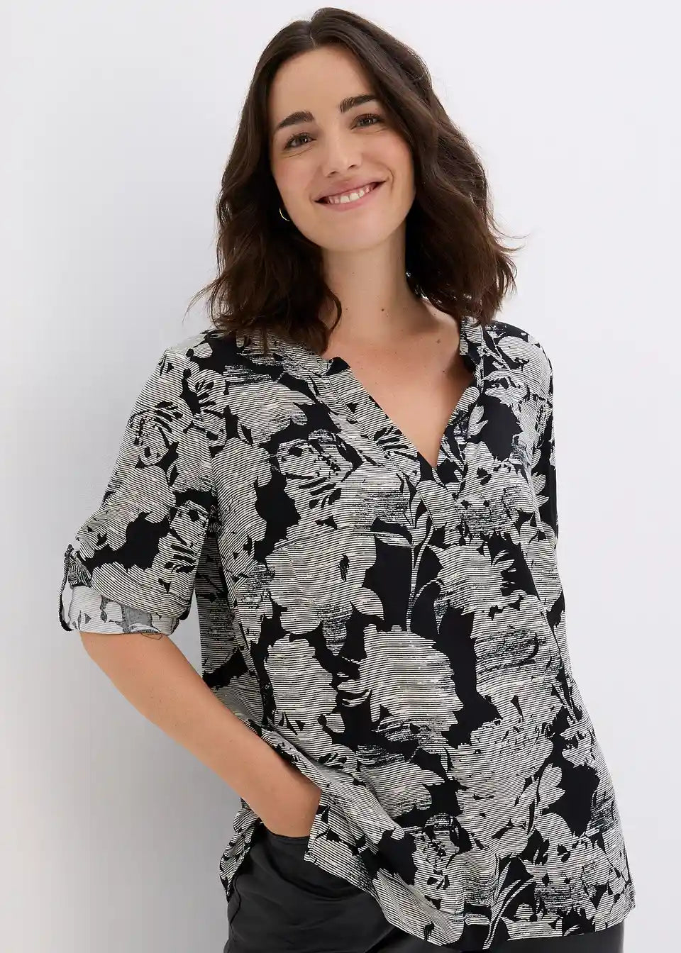 Privlačna bluzasta tunika z V-izrezom. Vsak kos je unikat.