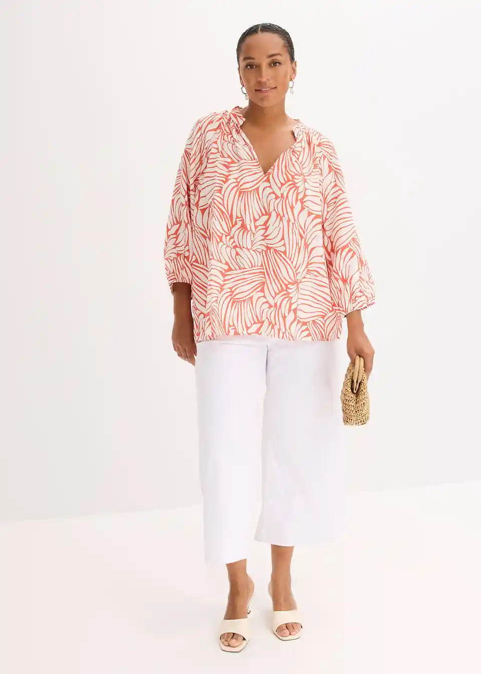 modno potiskana tunika bluza s široko krojenimi rokavi