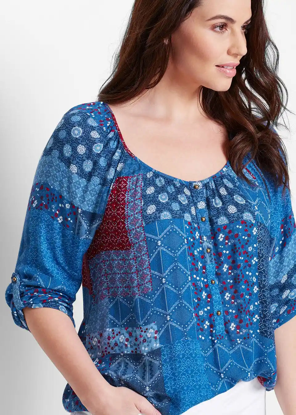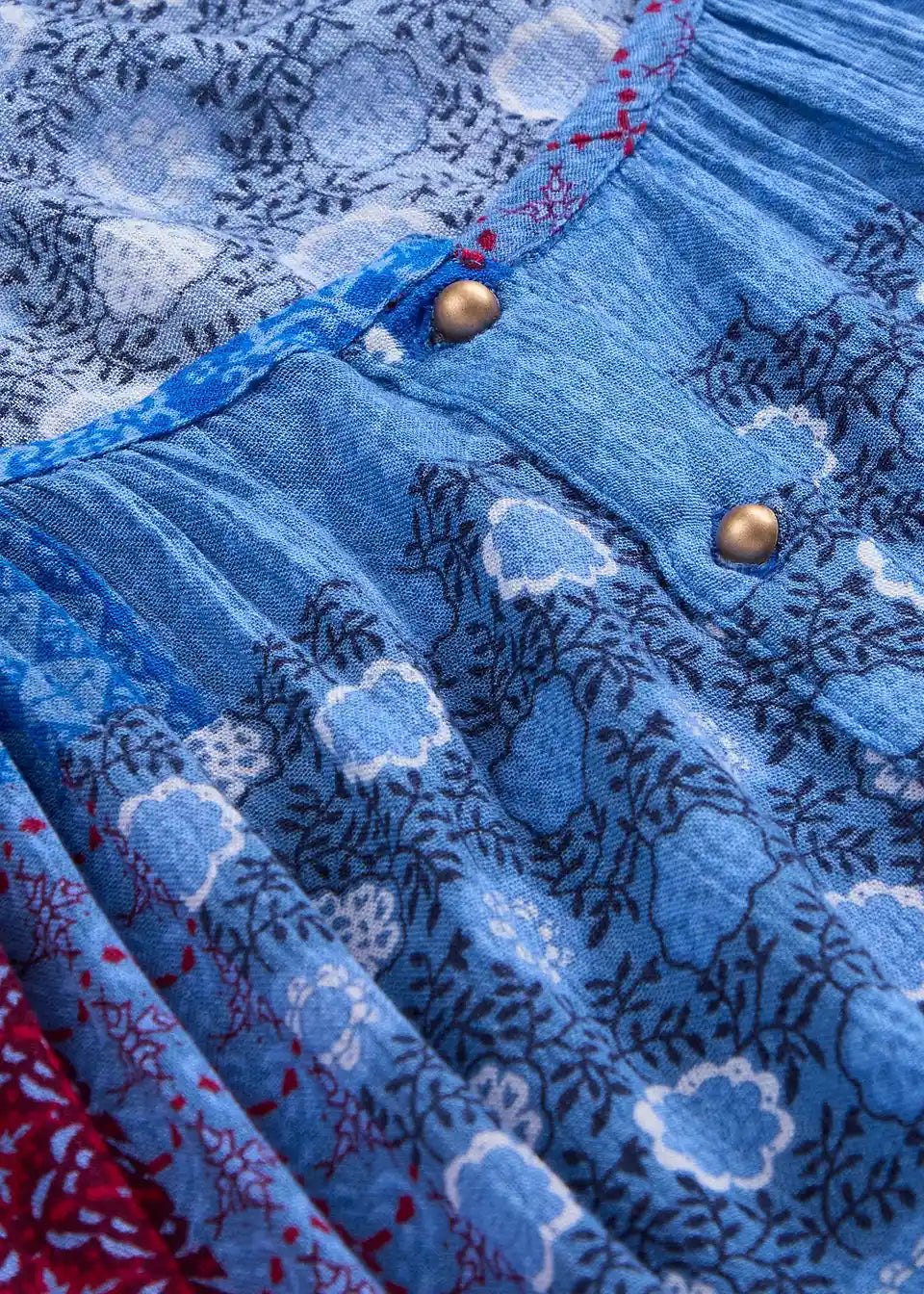 Lahkotna dolga tunika bluza z učnikom crincle. Zaradi posebnega postopka tiskanja je vsak kos unikaten.