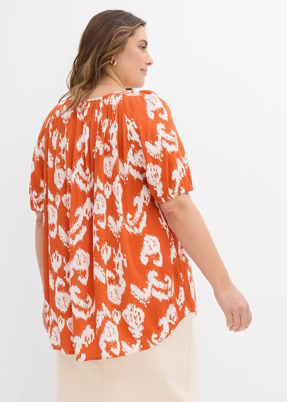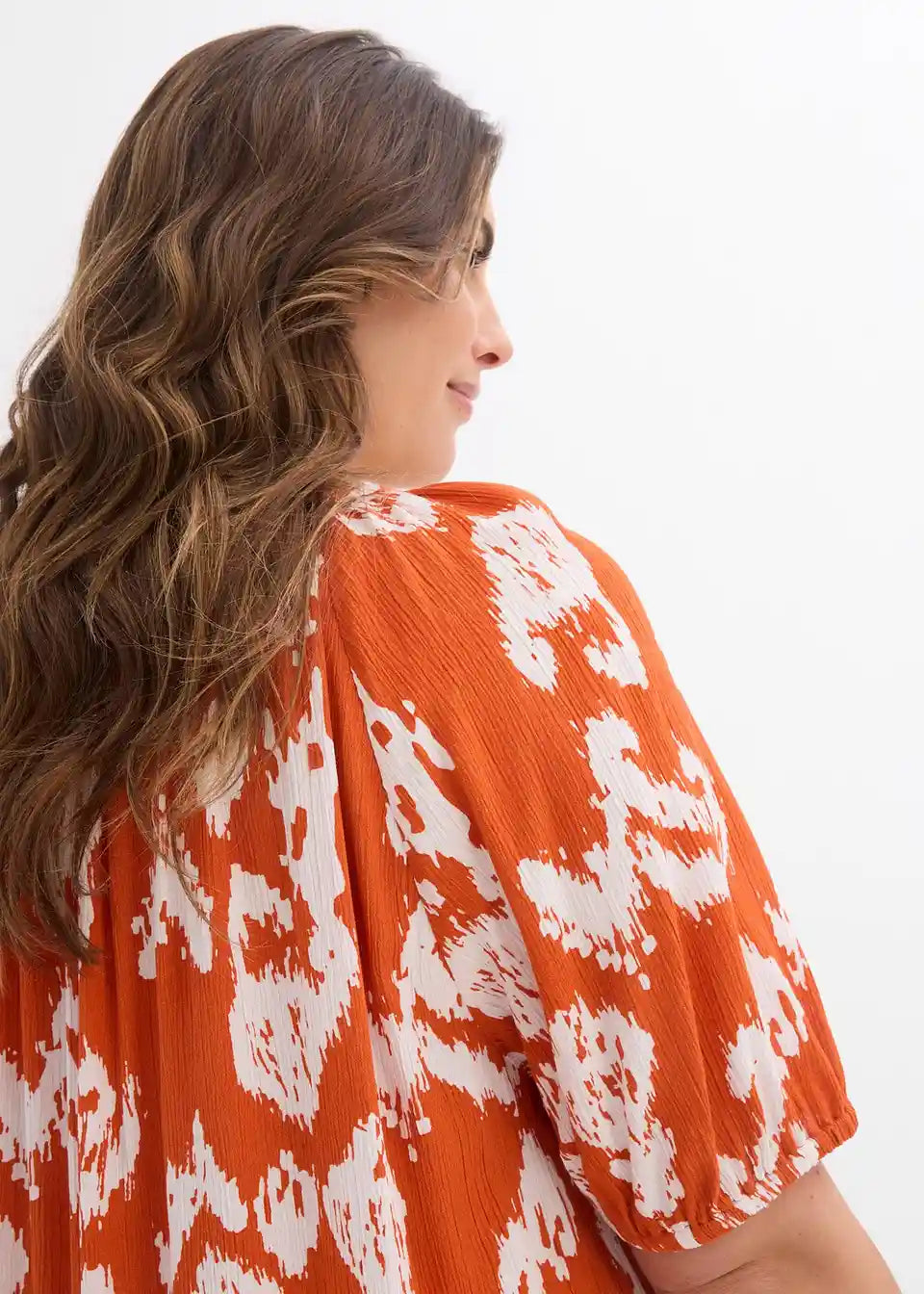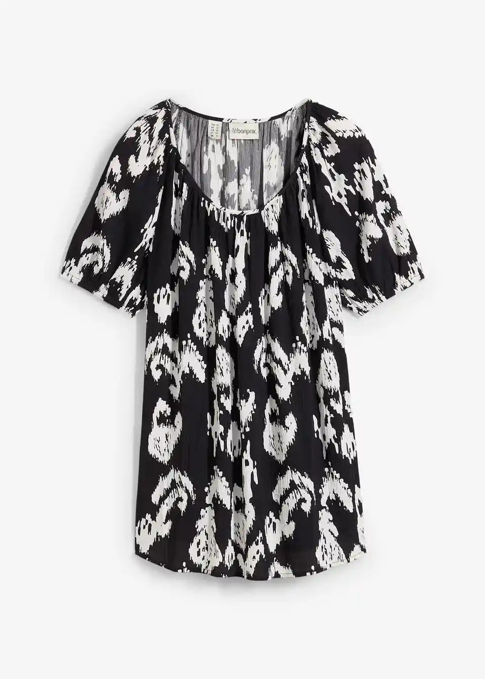 Tunika bluza iz rahlo strukturirane viskoze. Z elastičnim zaključkom na manšeti rokava in rahlo A-krojem.