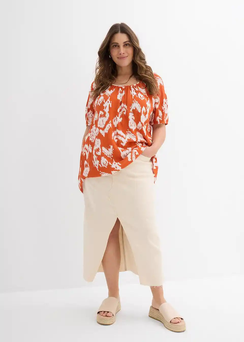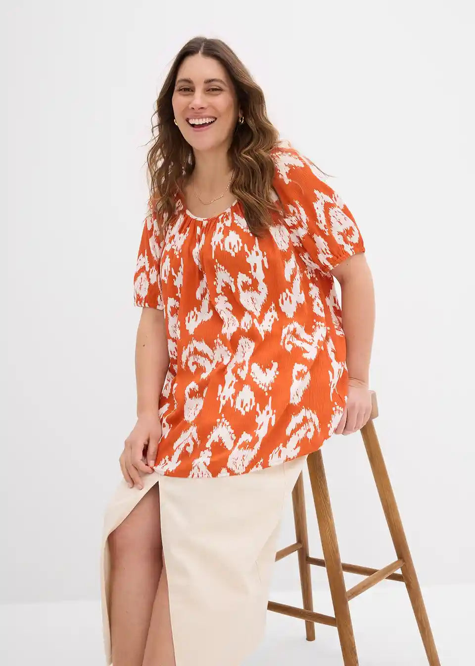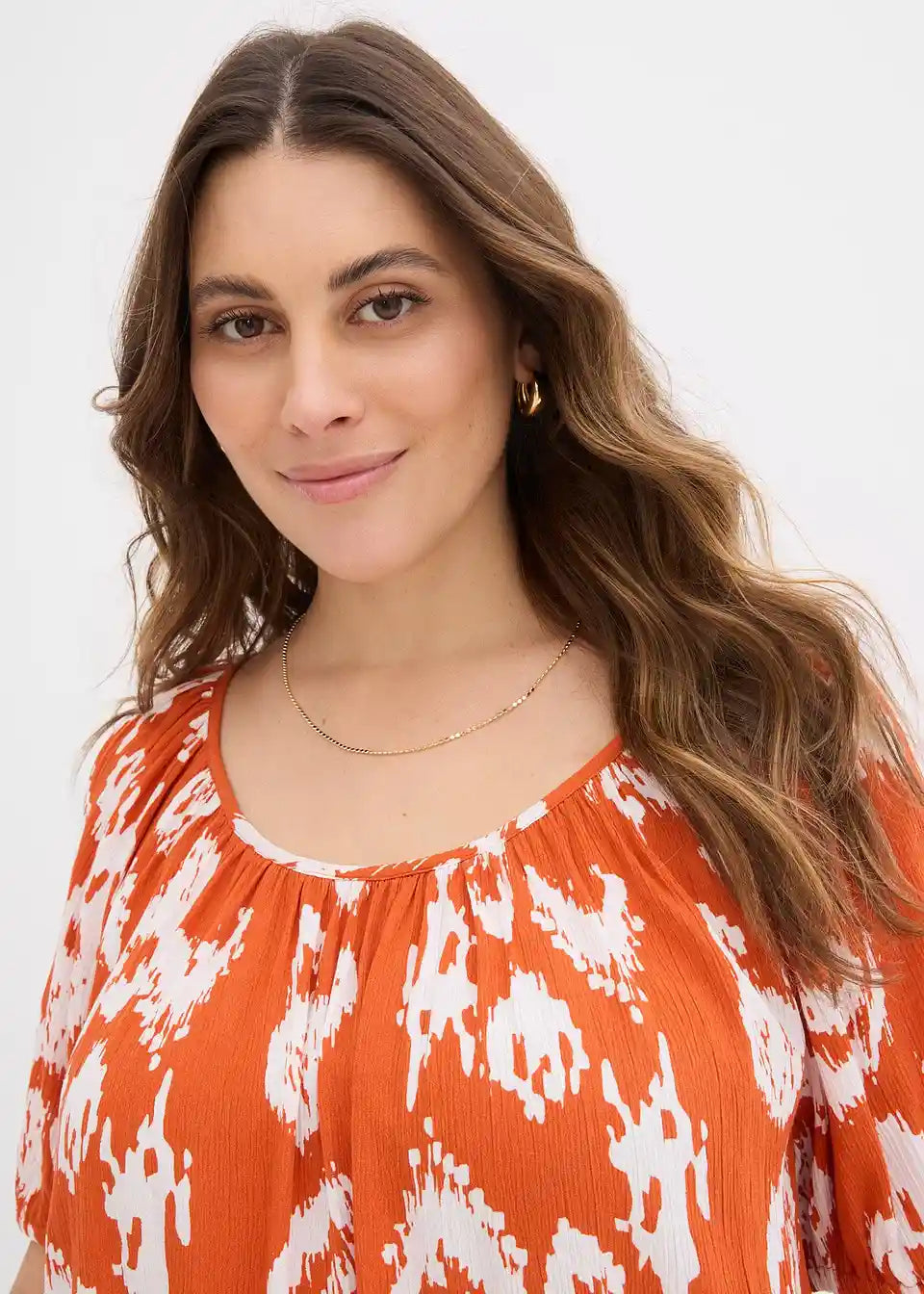 Tunika bluza iz rahlo strukturirane viskoze. Z elastičnim zaključkom na manšeti rokava in rahlo A-krojem.