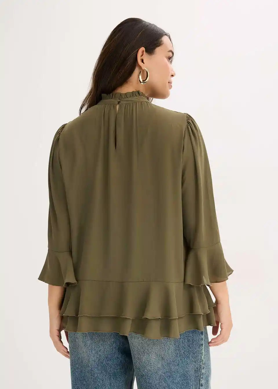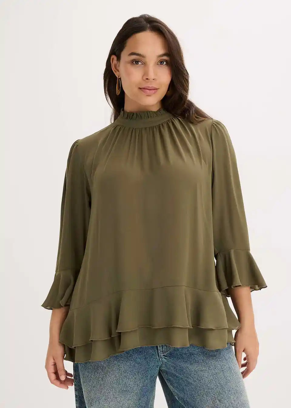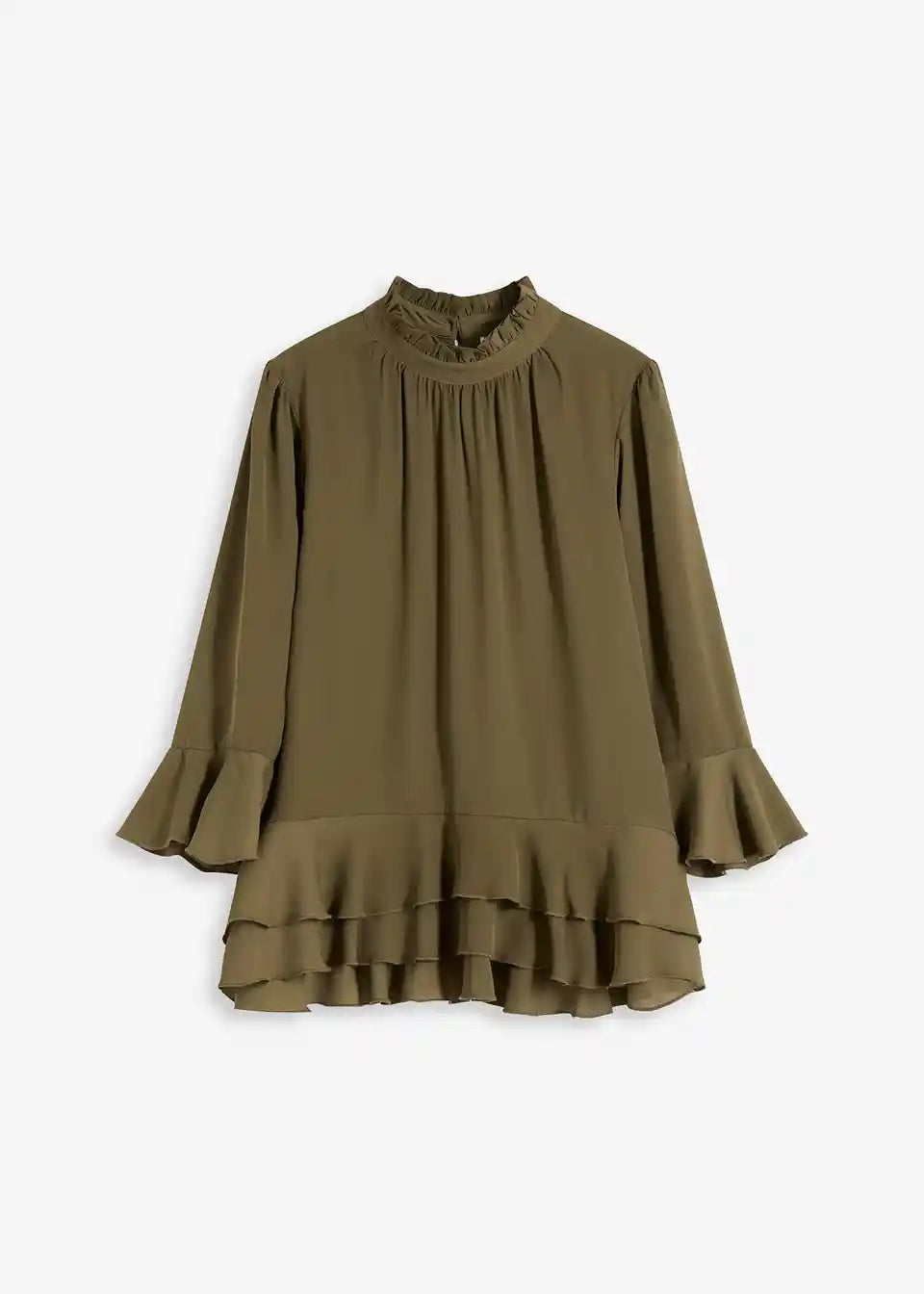 moderna tunika bluza s stoječim ovratnikom in rahlo zaobljenim sprednjim robom