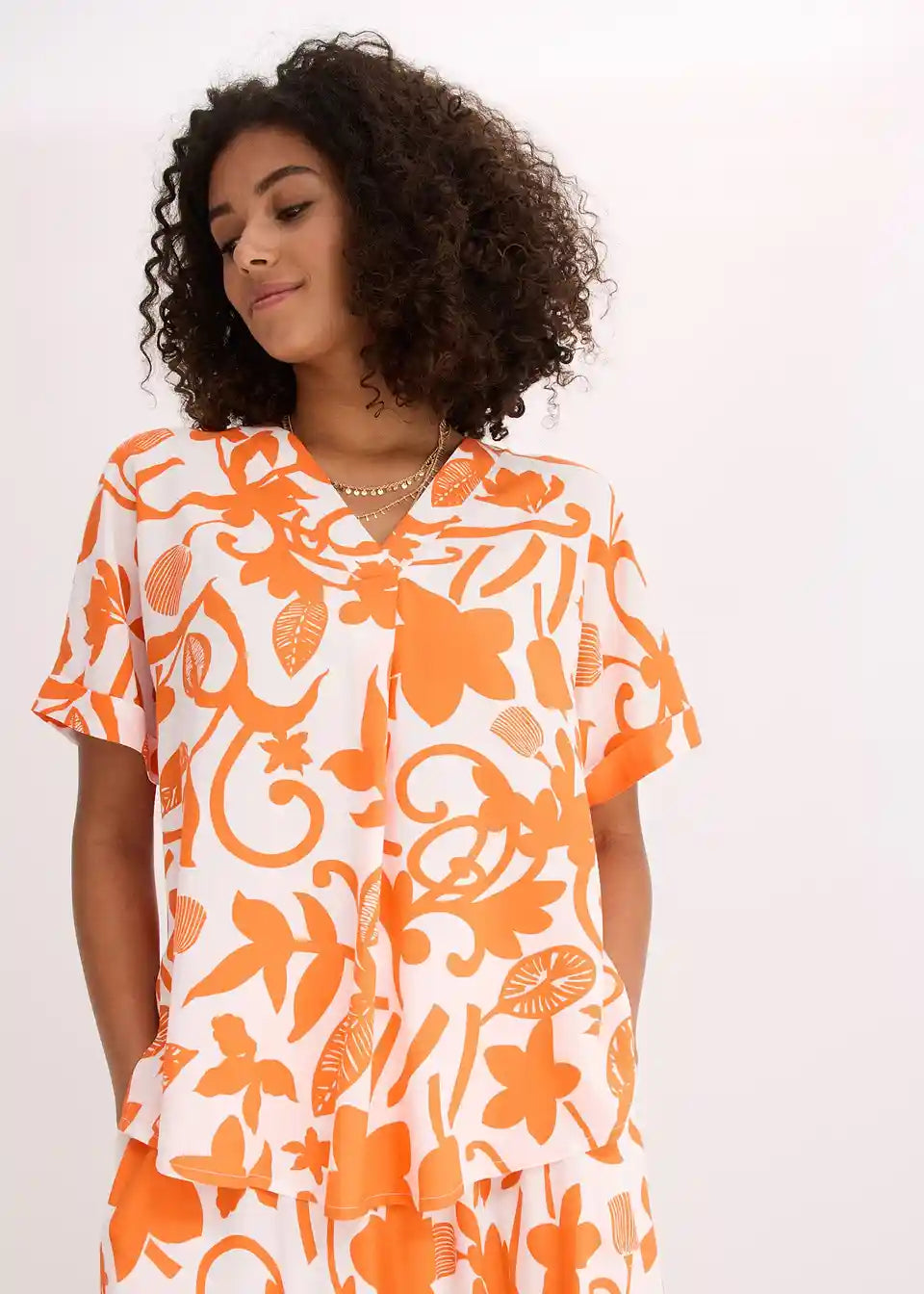 tunika bluza z rožastim vzorcem iz lahkotne viskoze