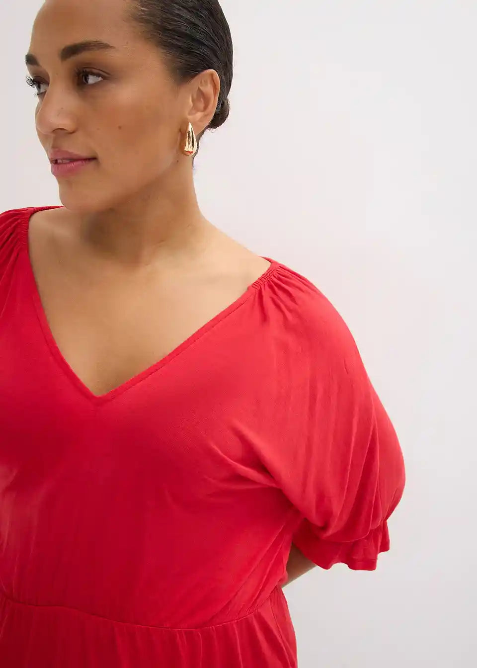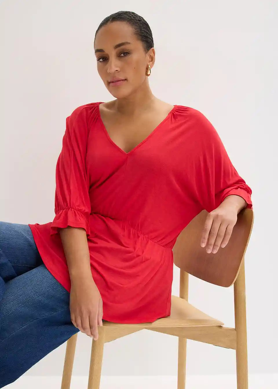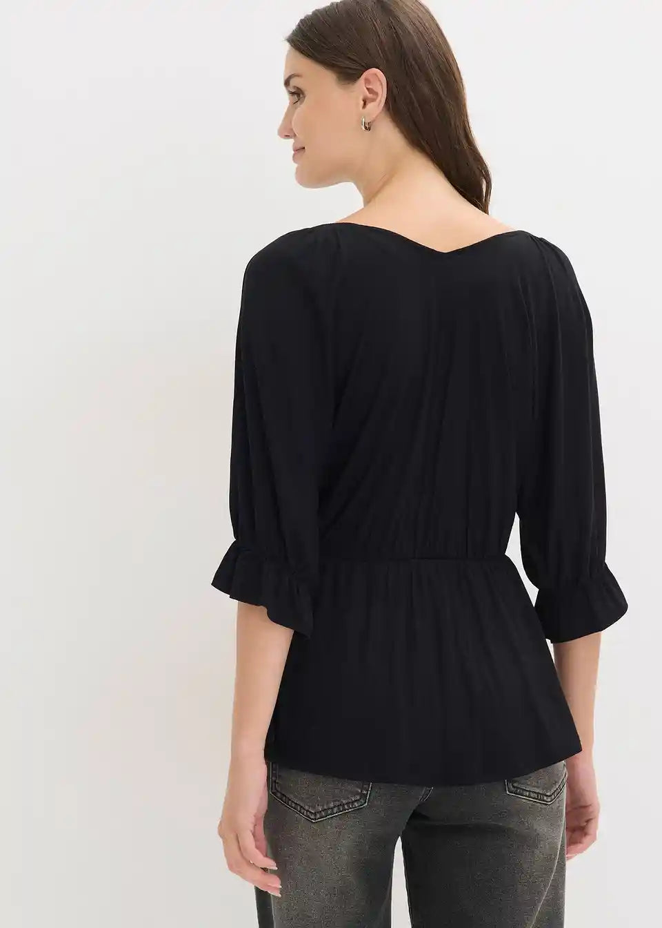 Telesni obliki lepo prilegajoča majica s carmen izrezom