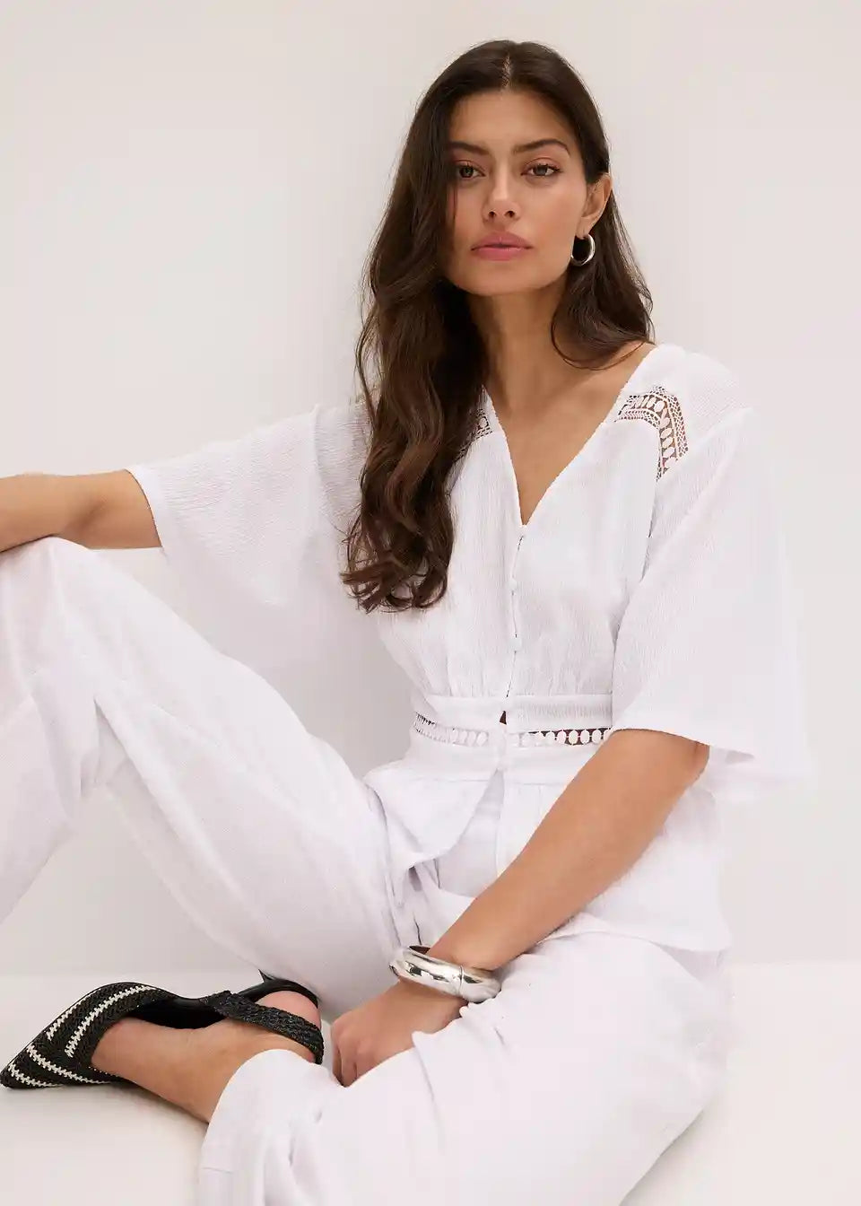Moderna majica s širokimi rokavi in kakovostno čipko