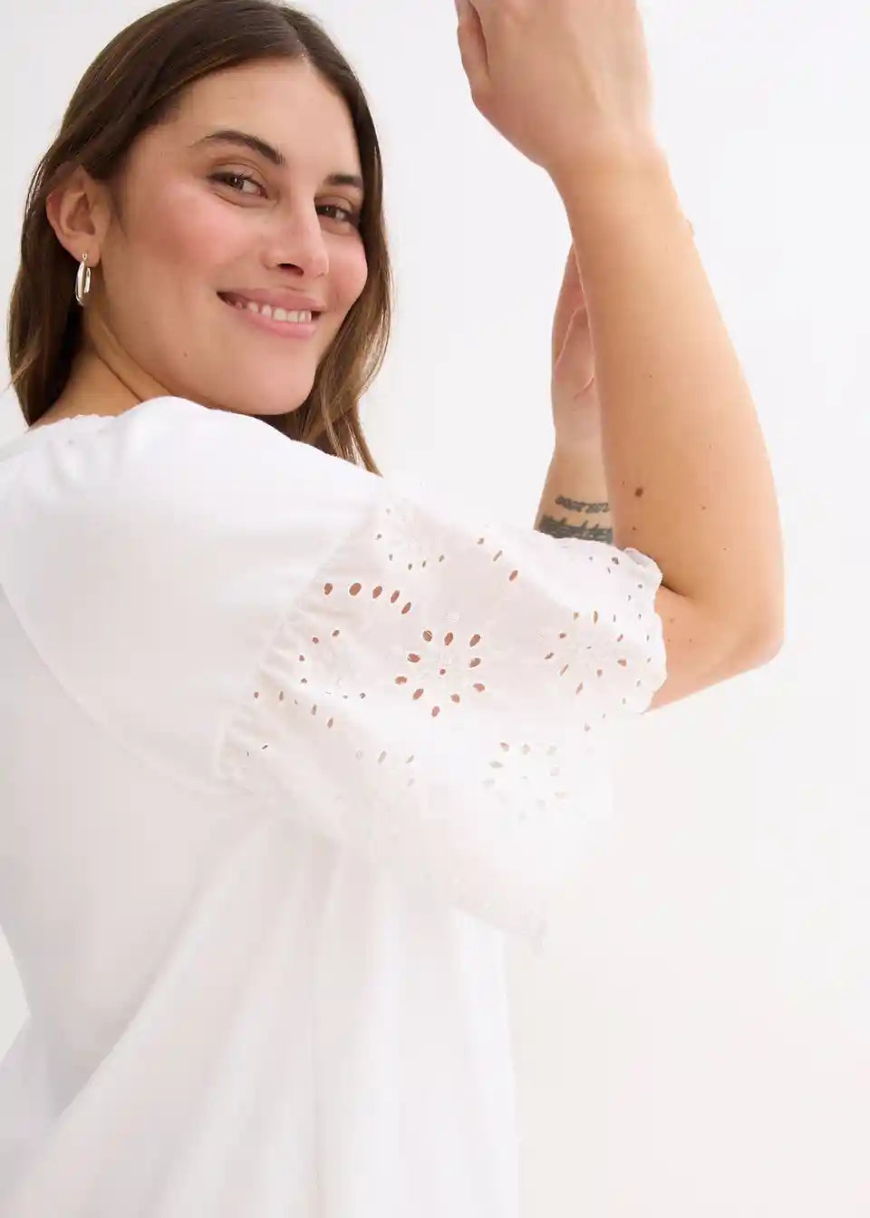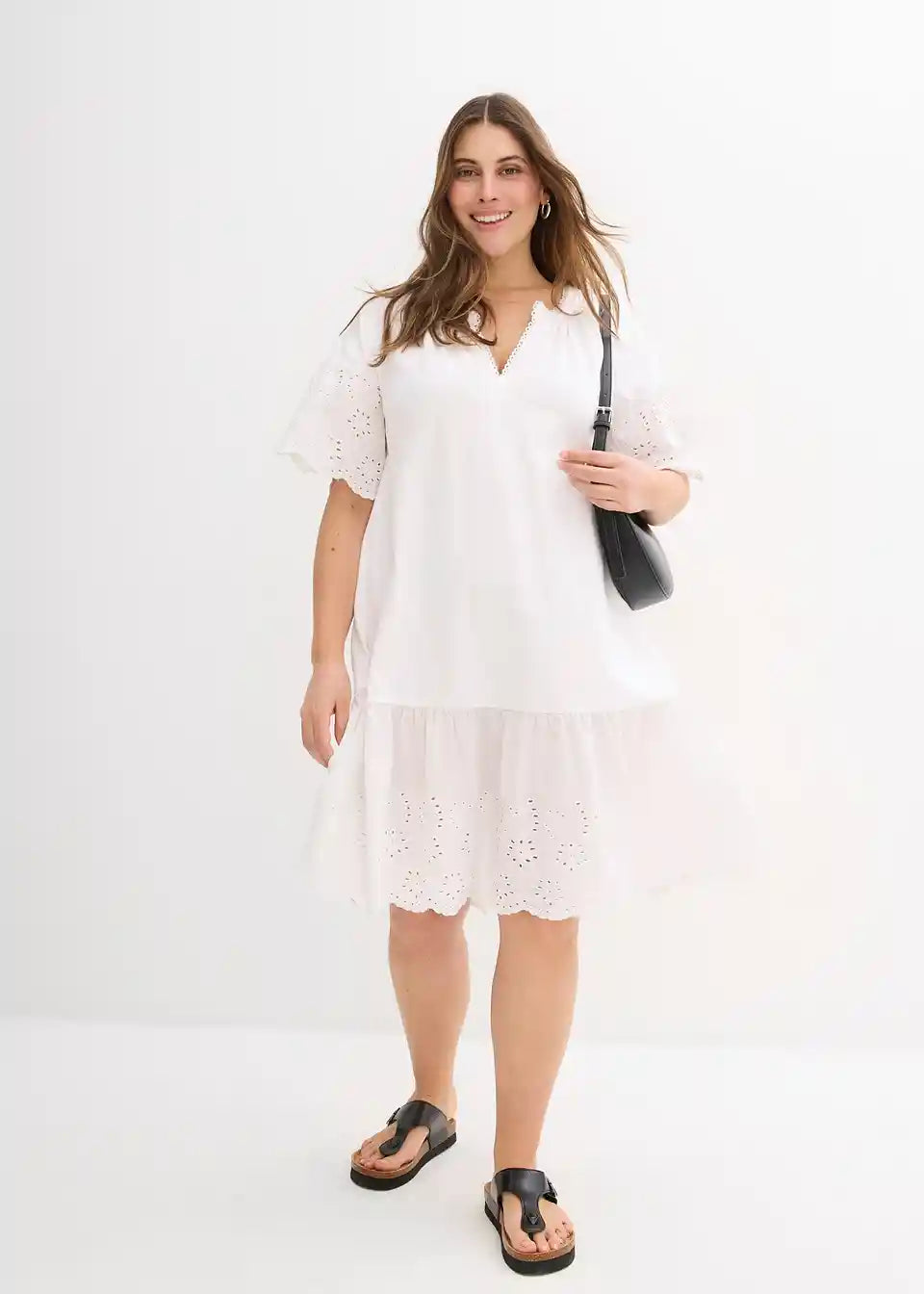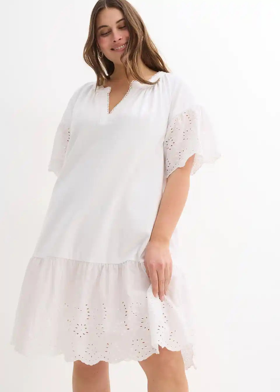 Tunika obleka z vezenimi robovi Embroiderie Anglaise