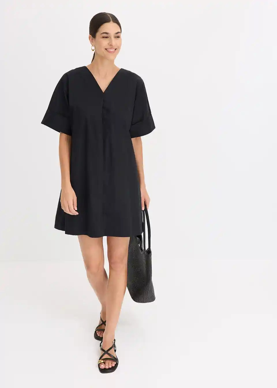 Razširjena tunika obleka z V-izrezom in kratkimi rokavi