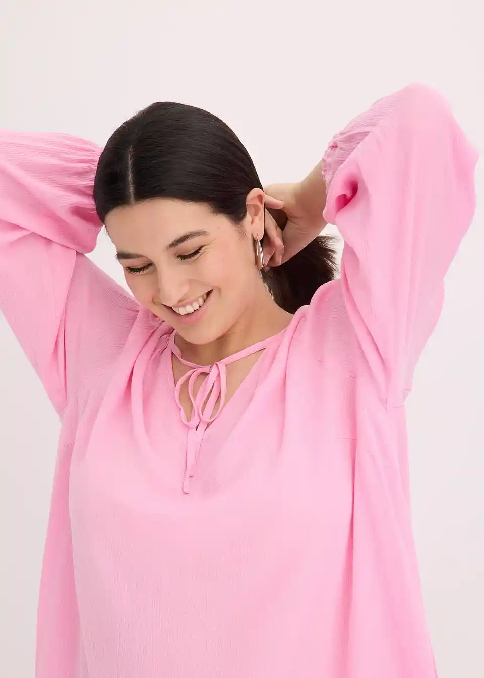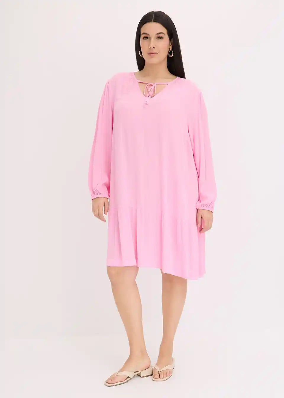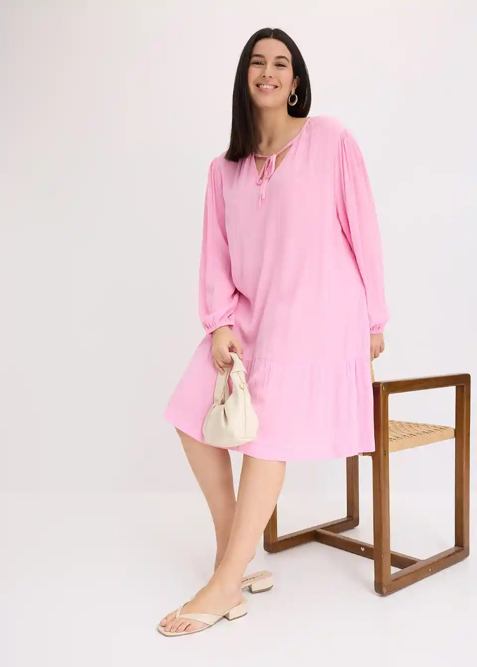 Kratka stopničasta obleka z zavezovanjem na izrezu