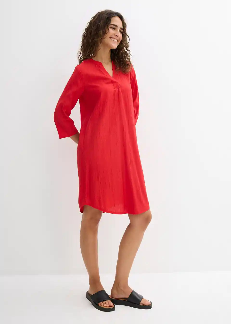 Obleka v kroju tunike iz padajoče viskozne strukturirane mešanice