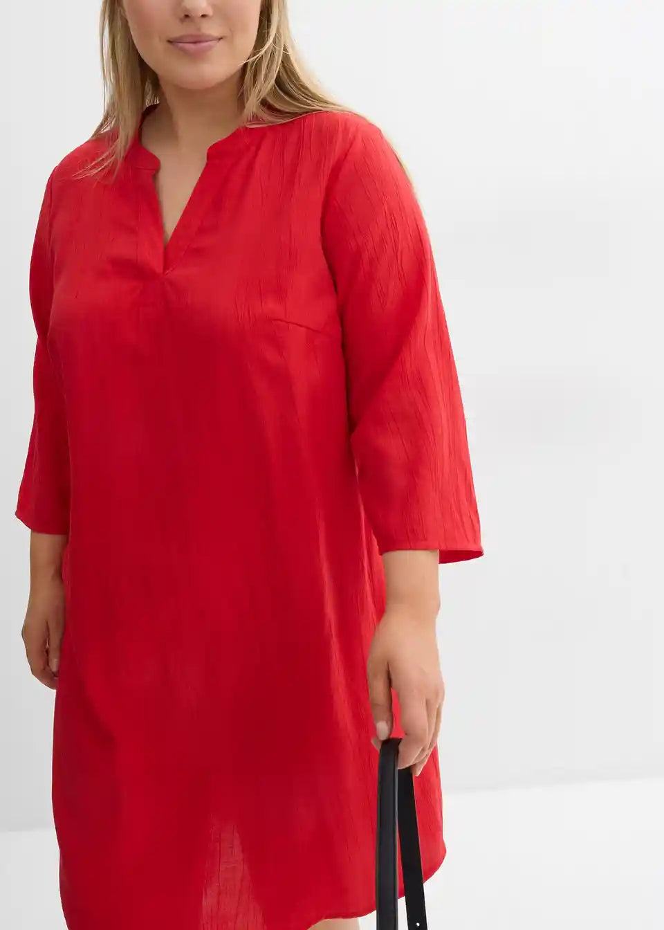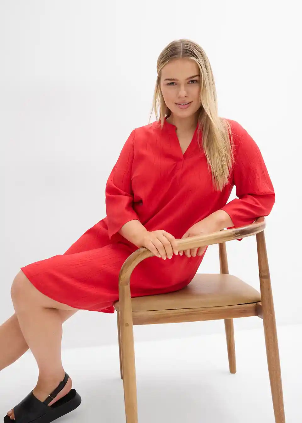 Obleka v kroju tunike iz padajoče viskozne strukturirane mešanice