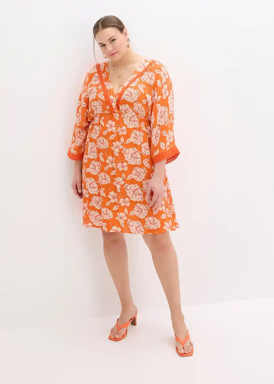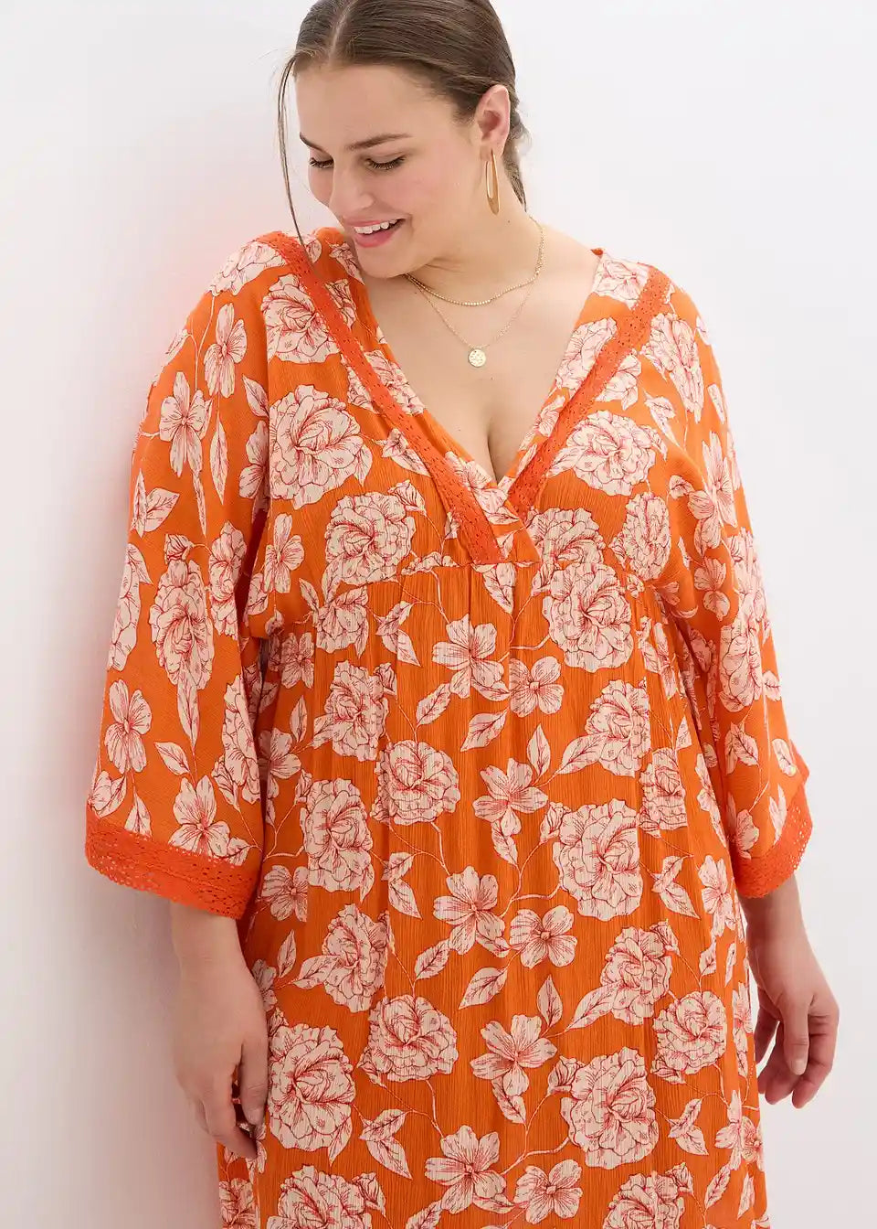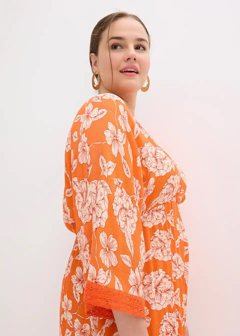 Obleka v kroju tunike s čipko iz strukturirane viskoze